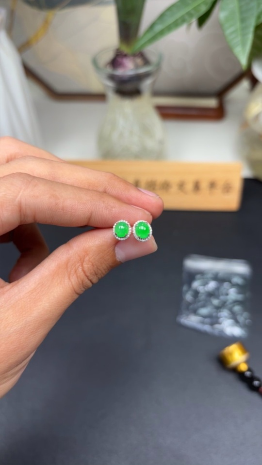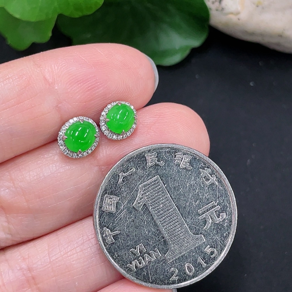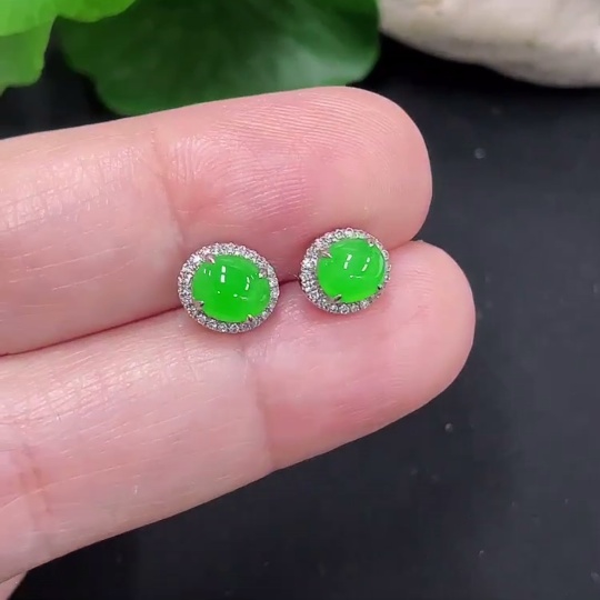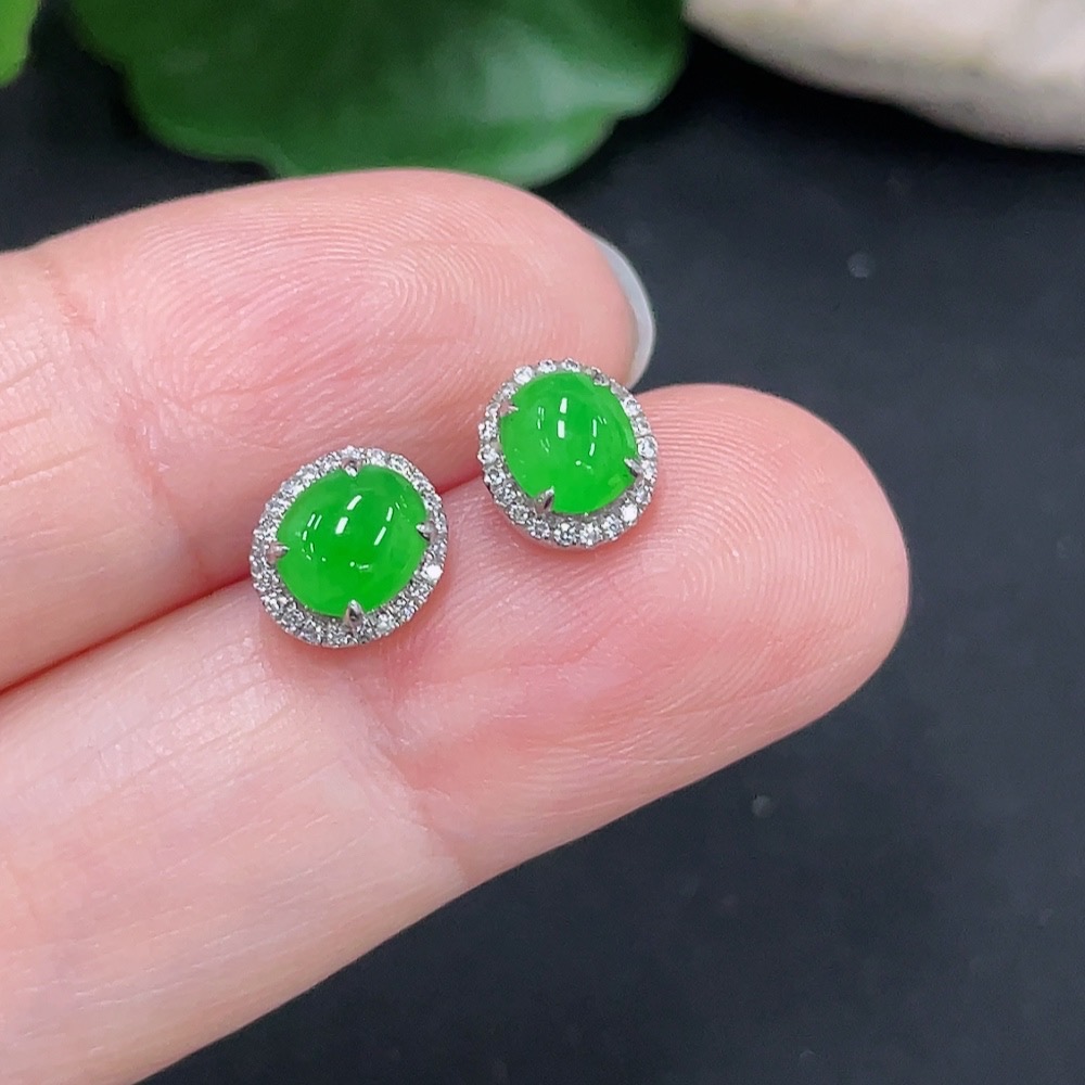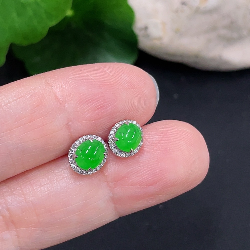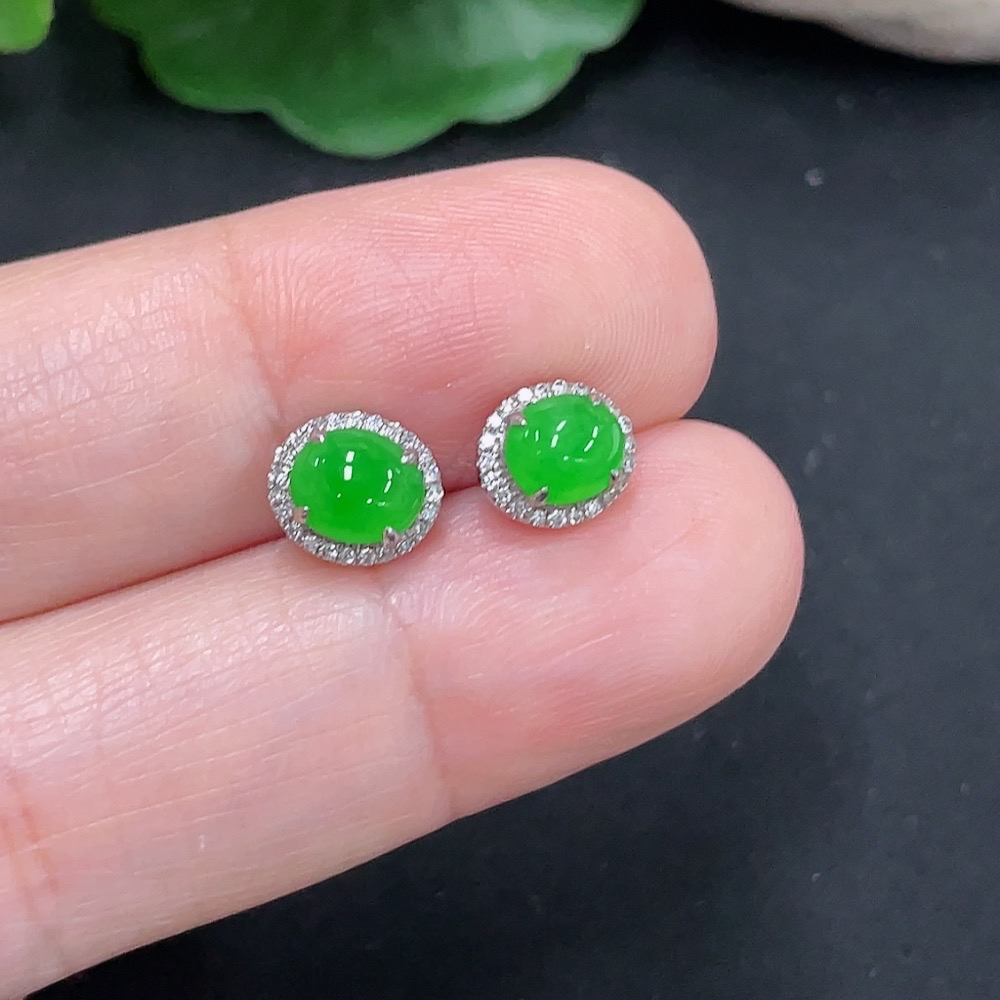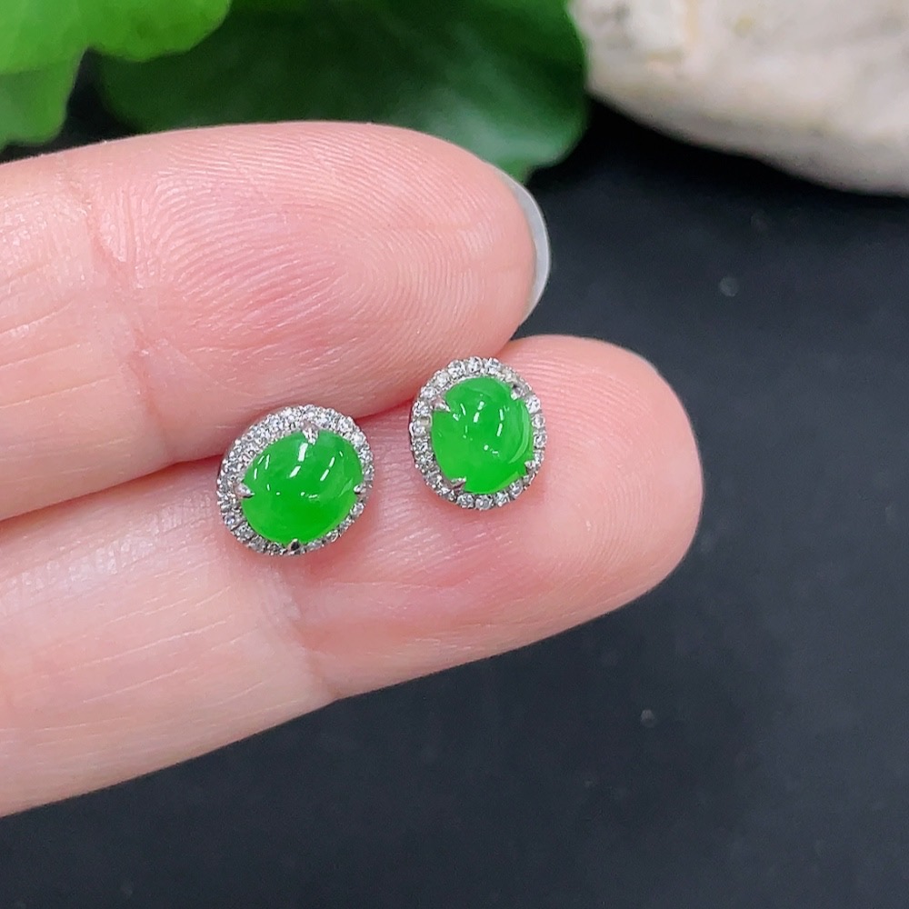 Jadeite earrings pair 18K gold total weight approx. 1.2g (with diamond accents) (excluding earring backs weight)