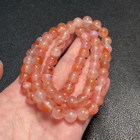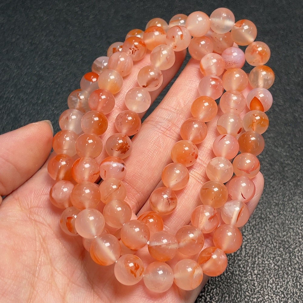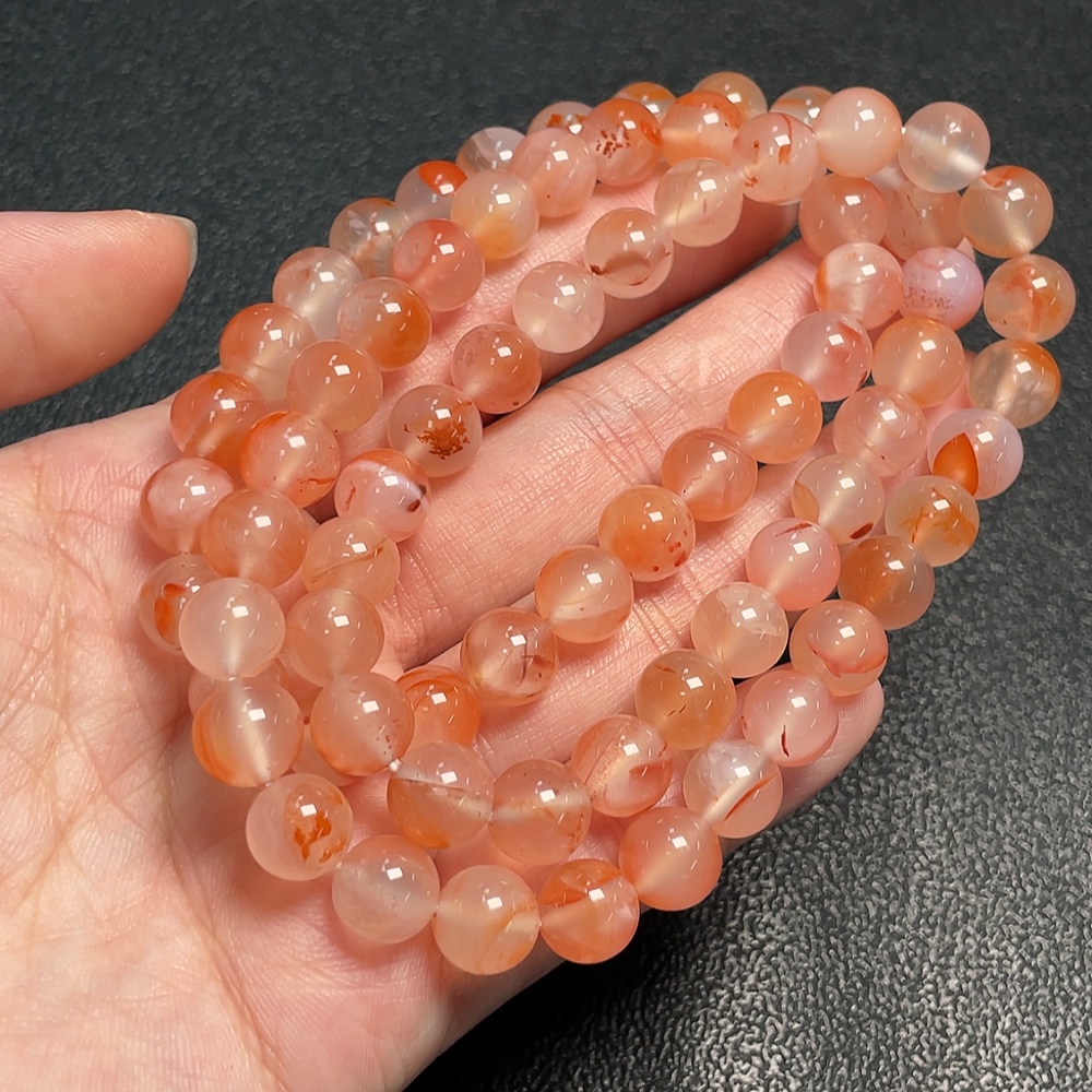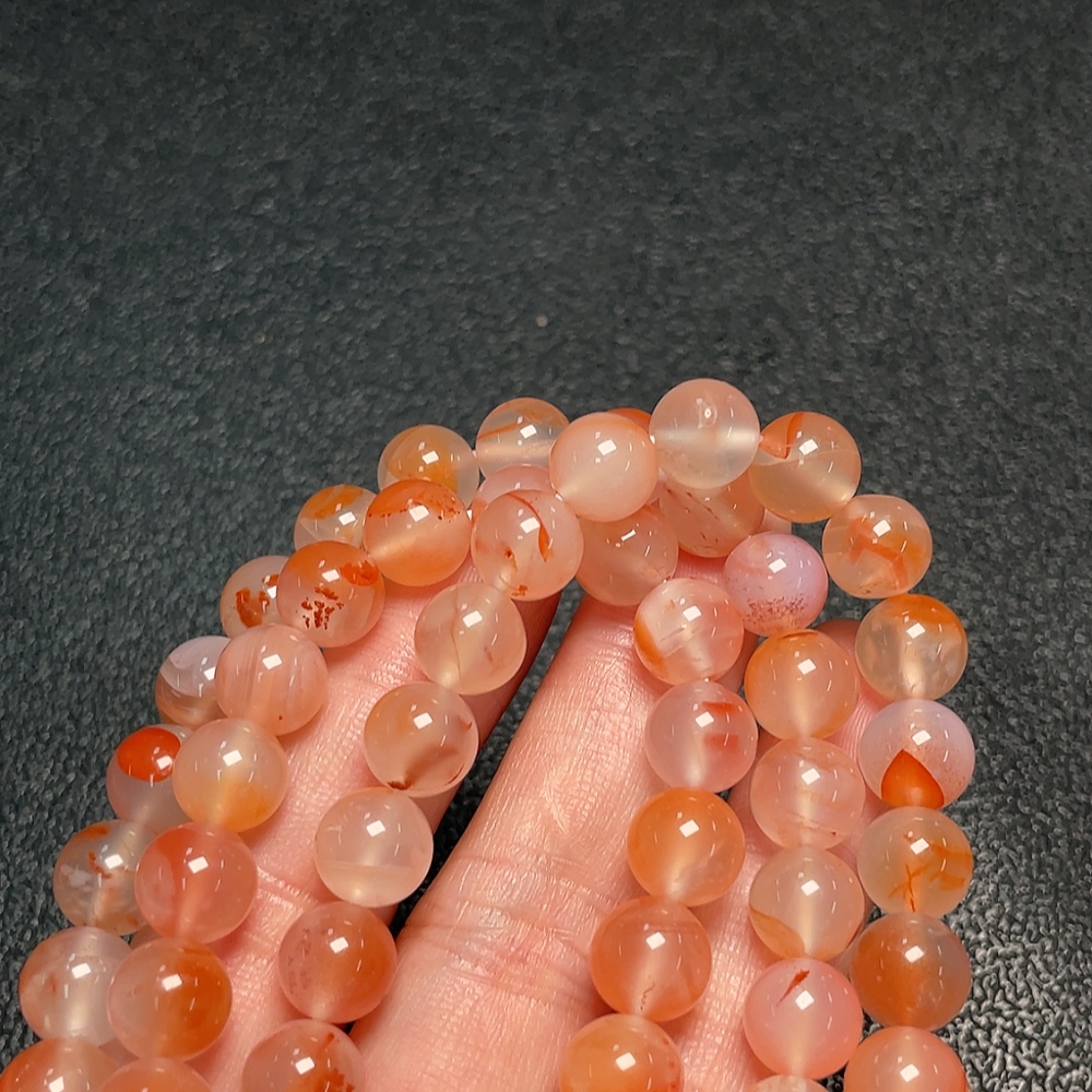South Red Agate Bead Necklace with Visible Organic Matter, Total Weight Approximately 64.86g, Bead Size About 8.6mm