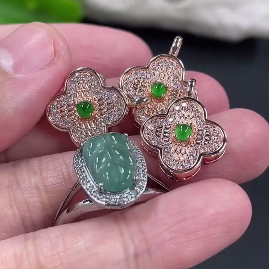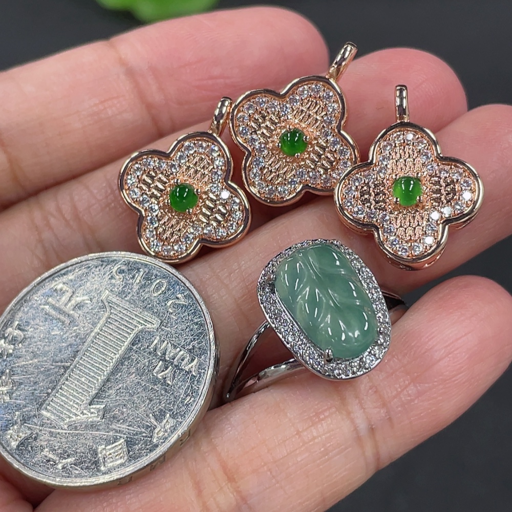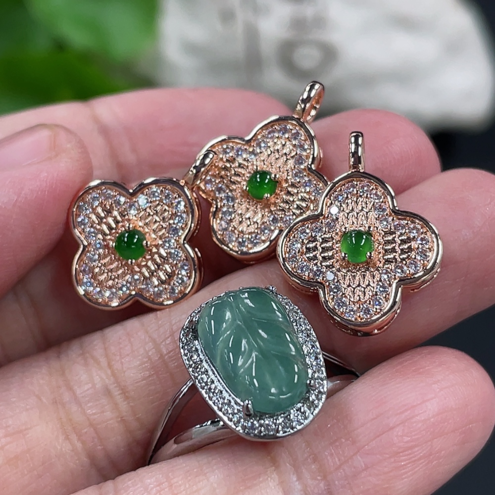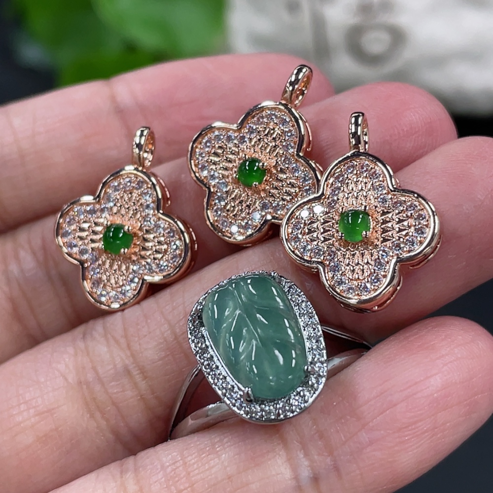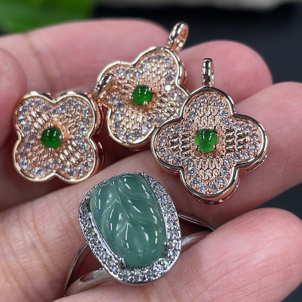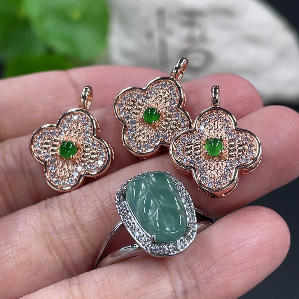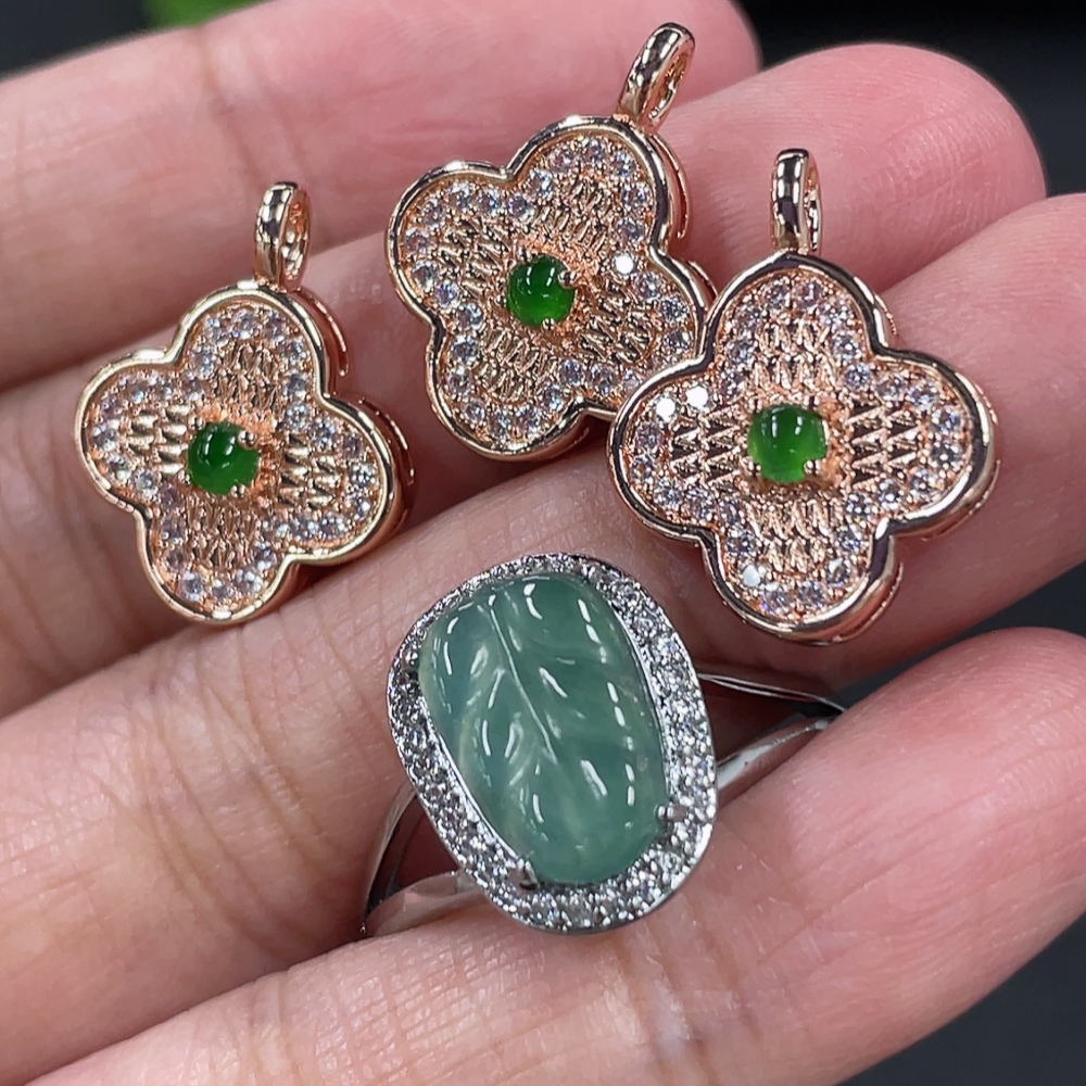 Jadeite Inlaid Pendant + Ring Non-Gold Inlaid Adjustable Size Total Weight Approx. 8.74g