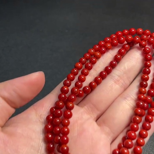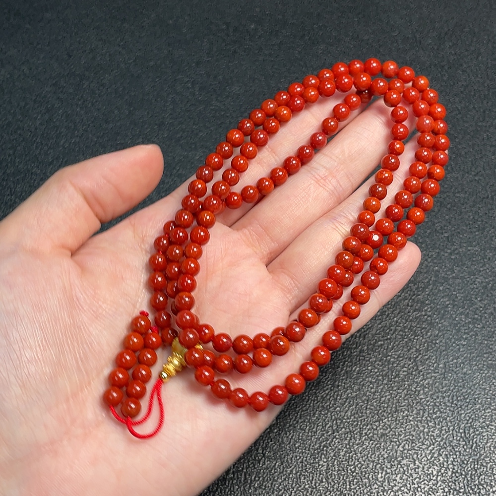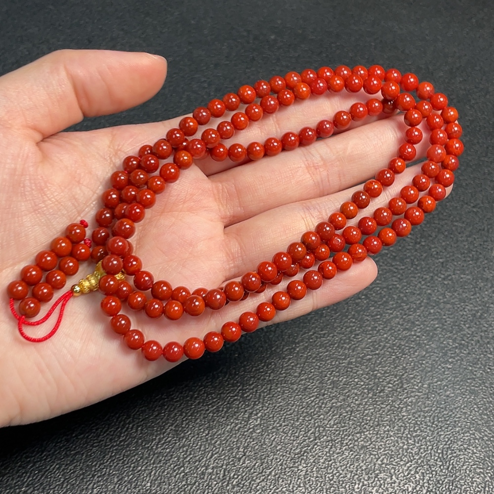 South Red Agate Bead Necklace with Visible Organic Matter, Total Weight Approximately 29.64g, Bead Size Around 5.2mm, Non-Gold