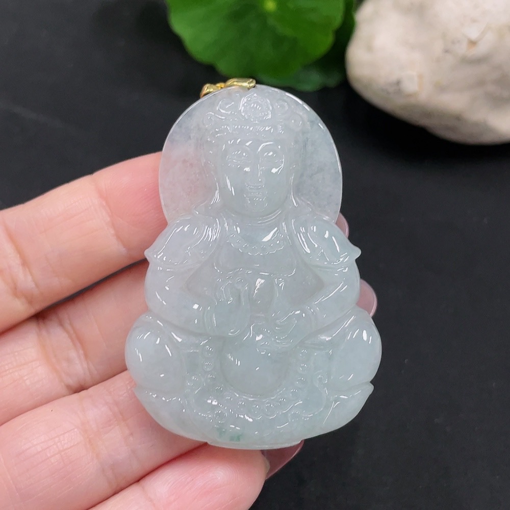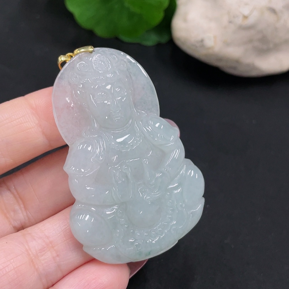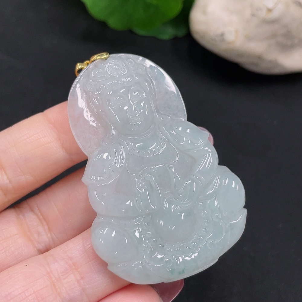 Jadeite Guanyin Pendant 18K Gold Total Weight Approx. 22g
