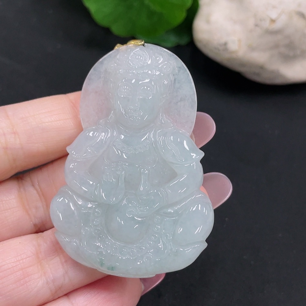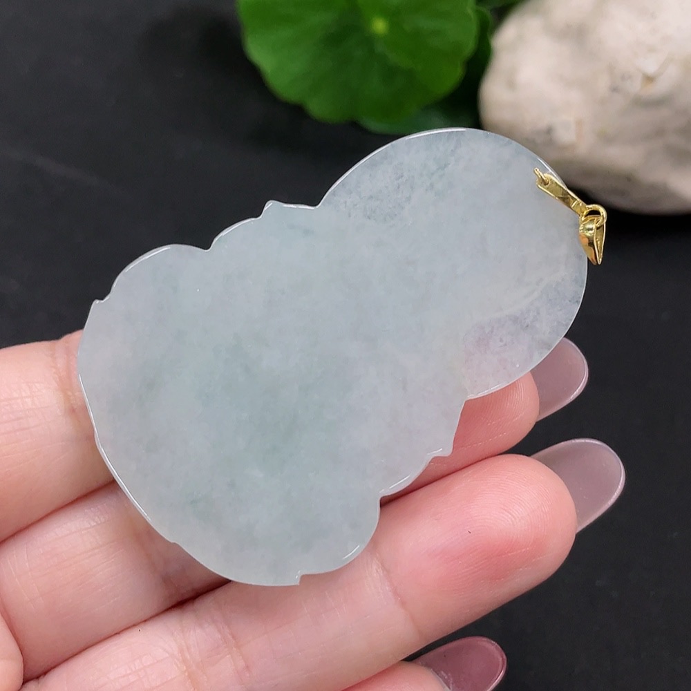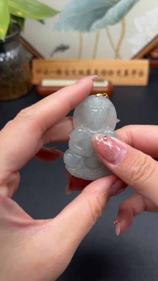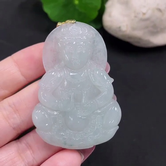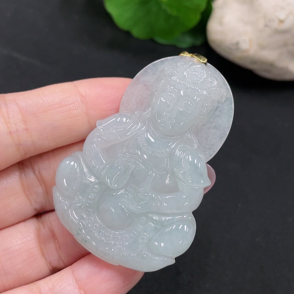 Jadeite Guanyin Pendant 18K Gold Total Weight Approx. 22g