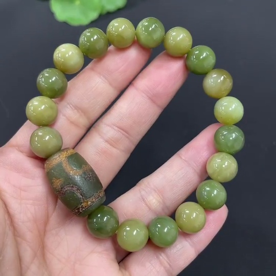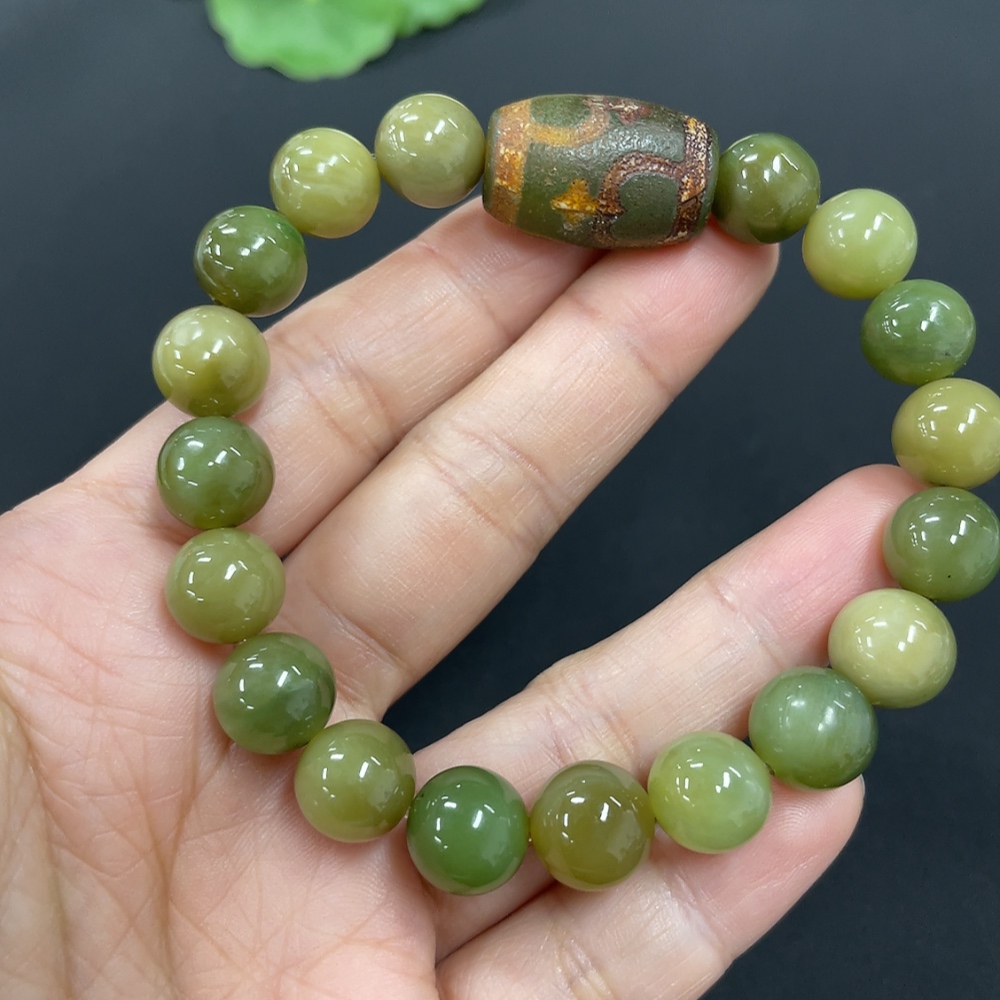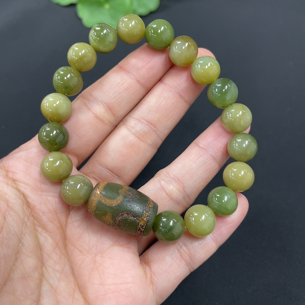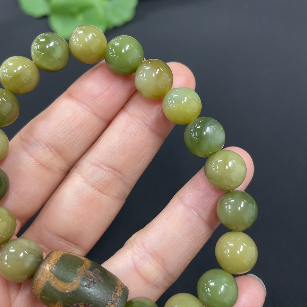 Hetian Jade Bracelet, approx. 9.6mm, total weight approx. 32g, with non-Hetian Jade beads