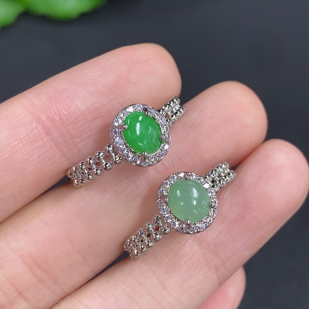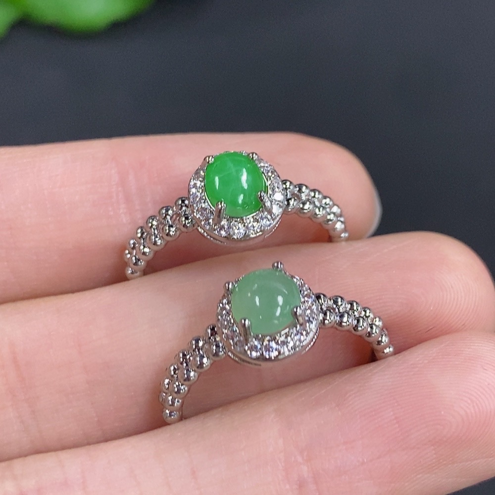 Jadeite Cabochon Ring Sell as a Lot Non-Gold Setting Adjustable Size