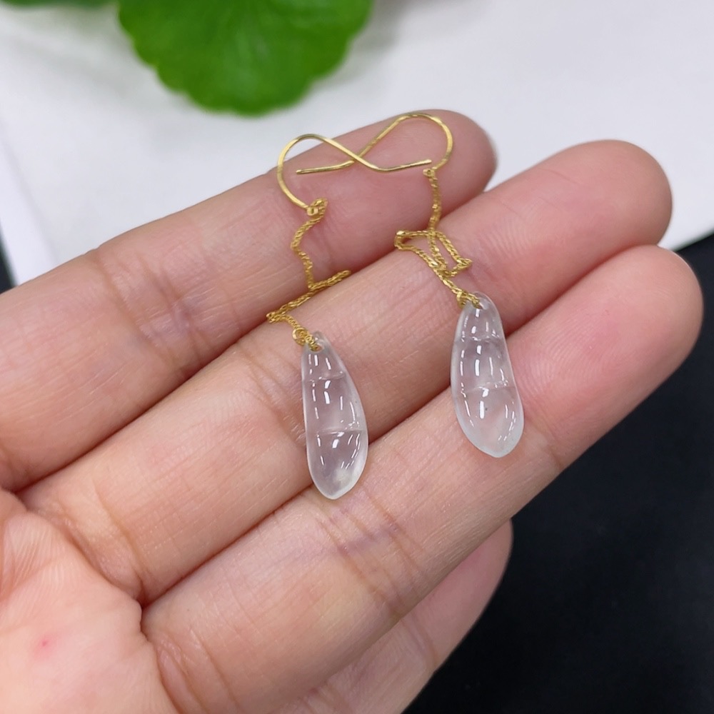 Jadeite Inlaid Earrings 18k Total Weight Approx.1g