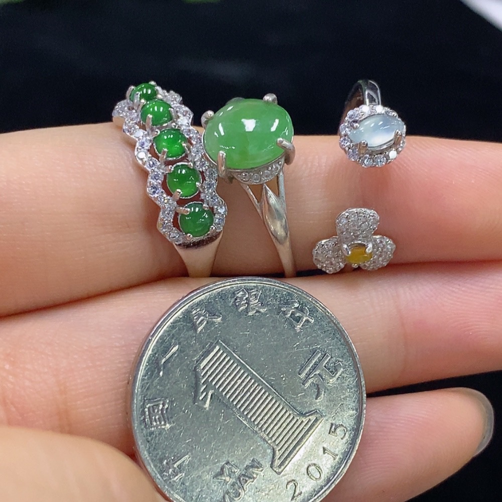 Jadeite Inlaid Ring Non-Gold Adjustable