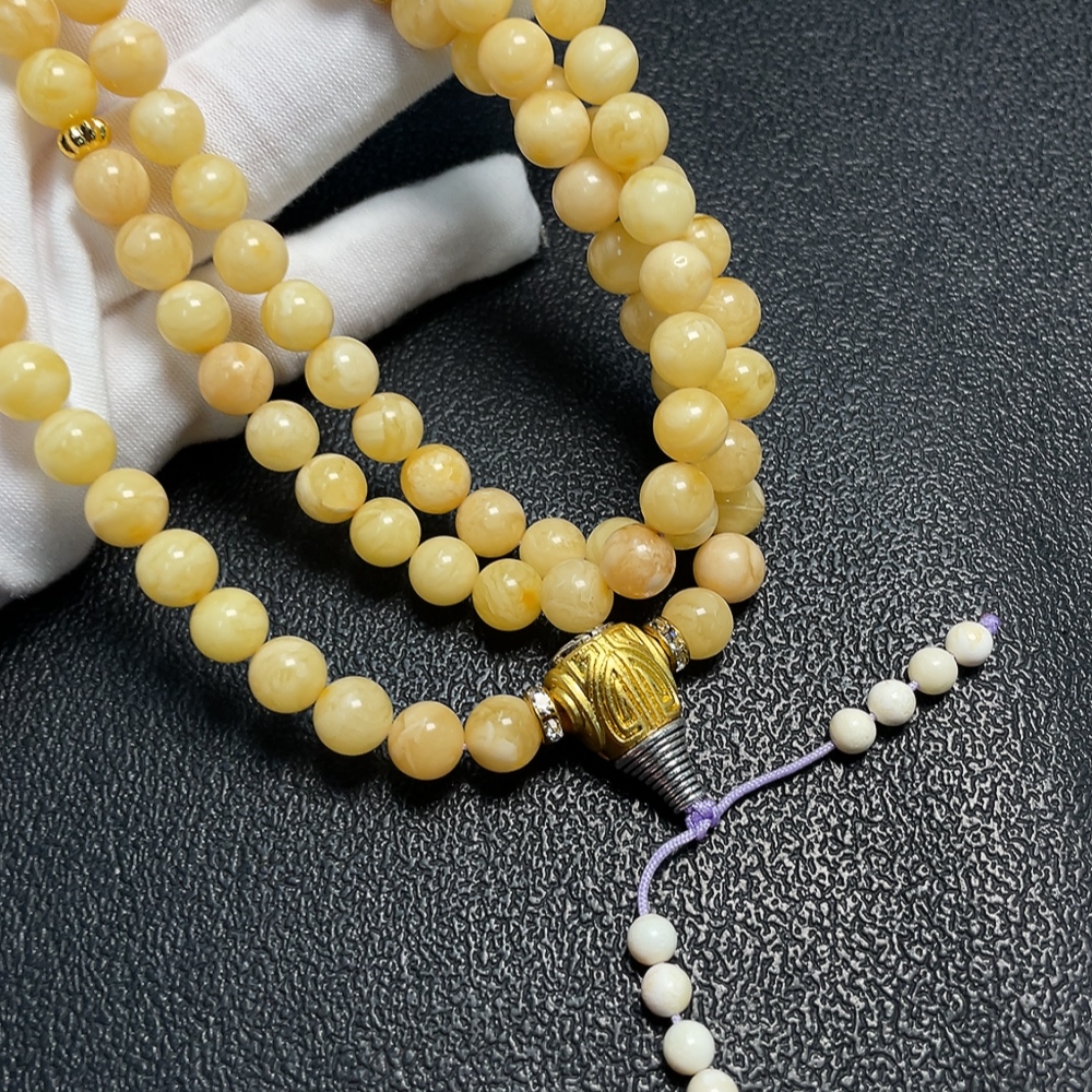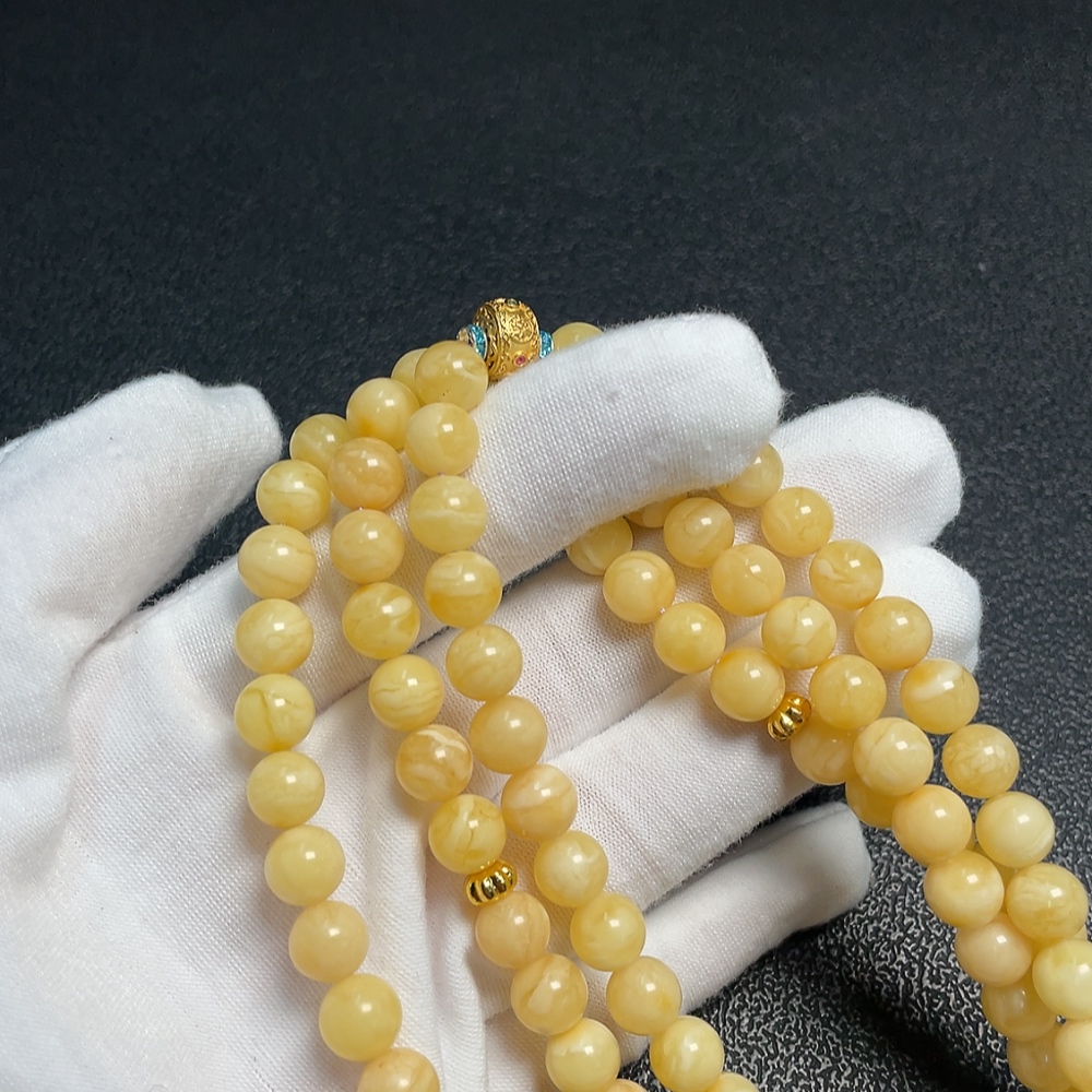 Amber Beeswax Bead Necklace, Total Weight Approx. 34.79g, Size About 7.8mm, Non-Gold