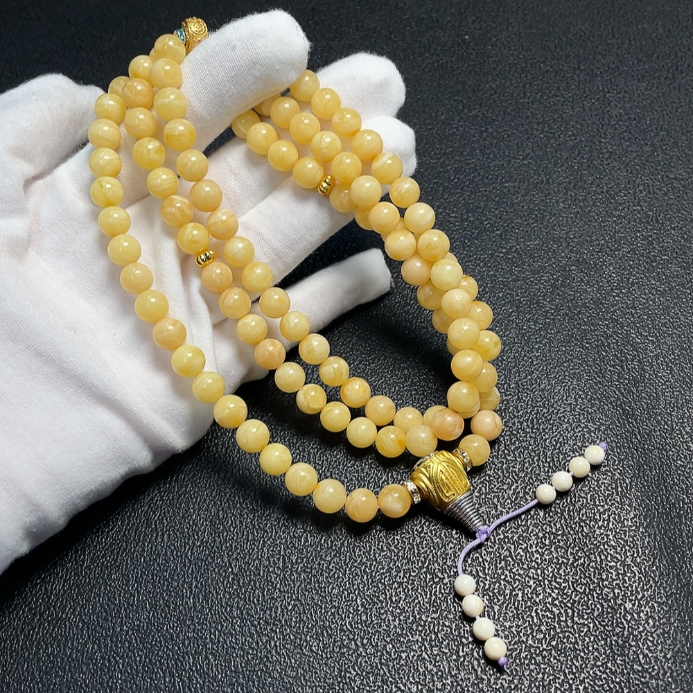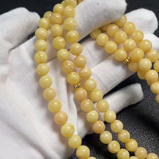 Trezaar - Amber Beeswax Bead Necklace, Total Weight Approx. 34.79g, Size About 7.8mm, Non-Gold