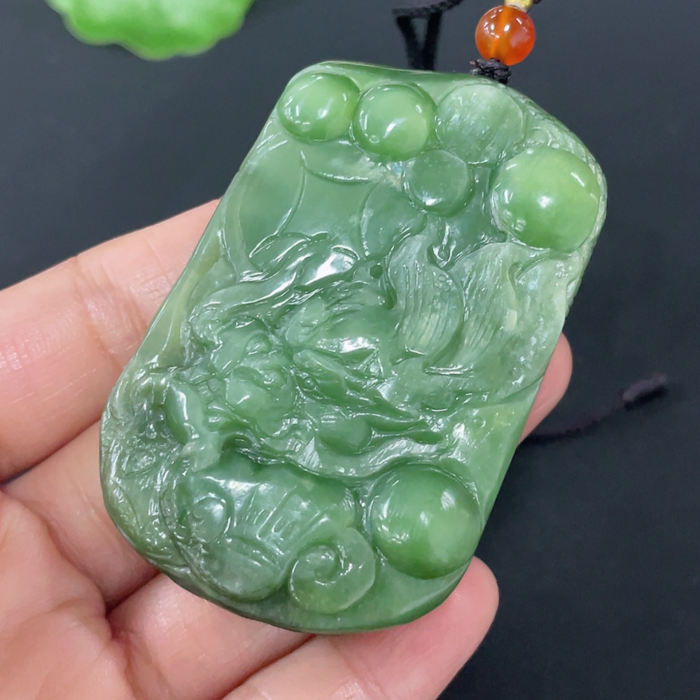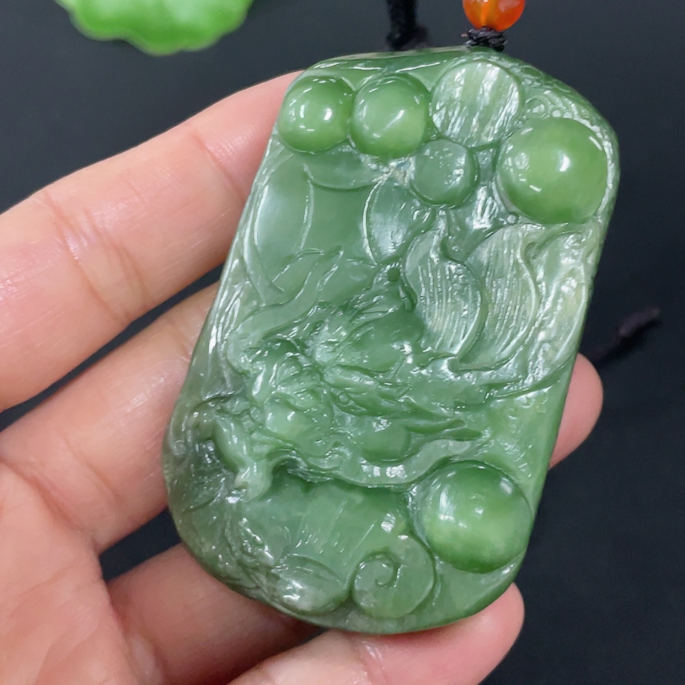 Hetian Jade Jasper Pendant Dragon Plaque Total Weight (Including Rope) Approx. 45.2g Matching Beads Not Hetian Jade