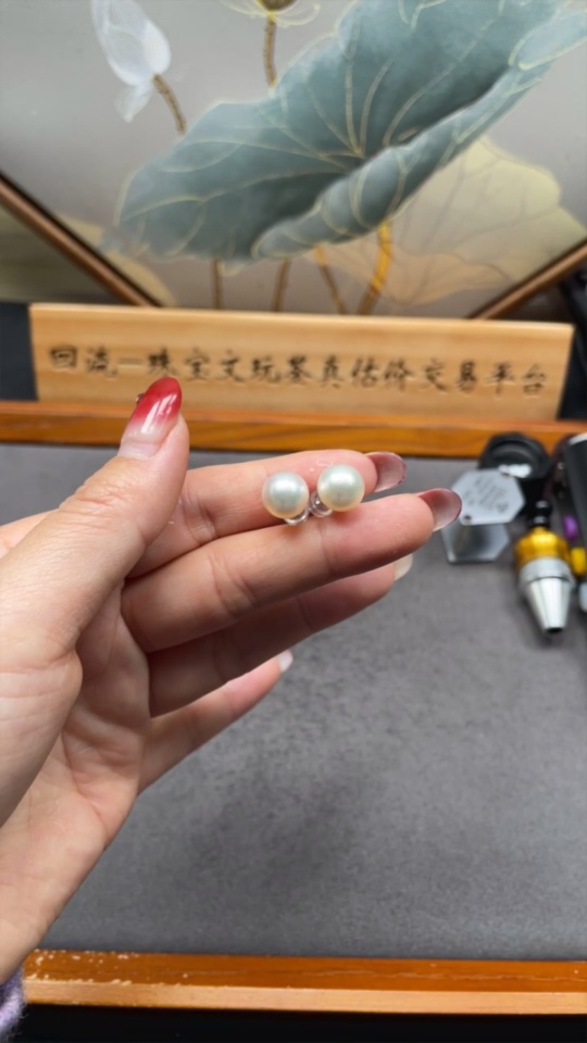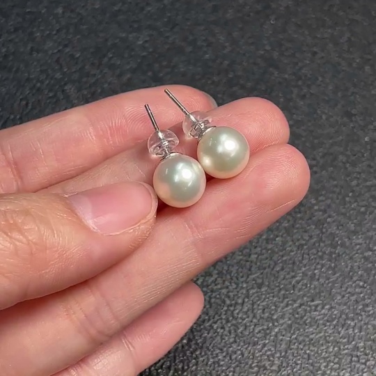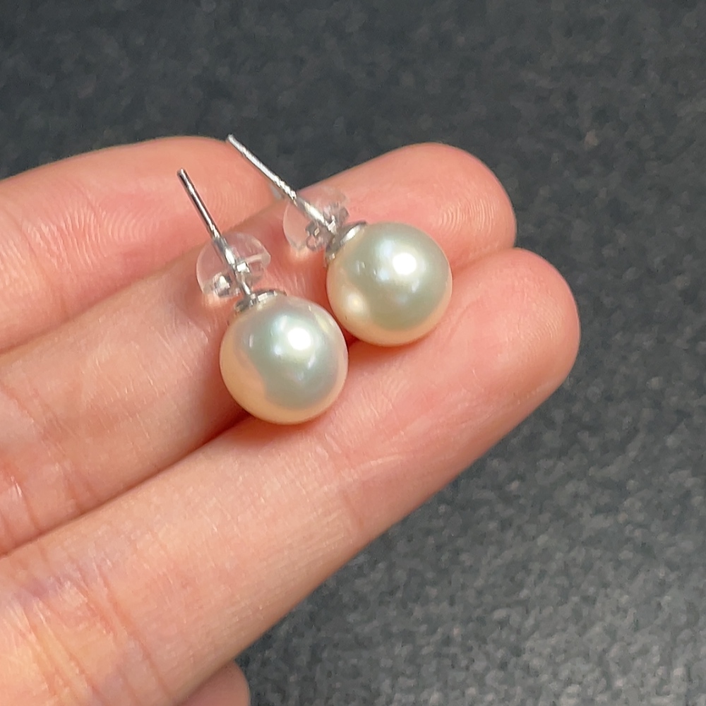 Seawater pearl earrings non-gold total weight about 2.8g size approx. 9.2mm