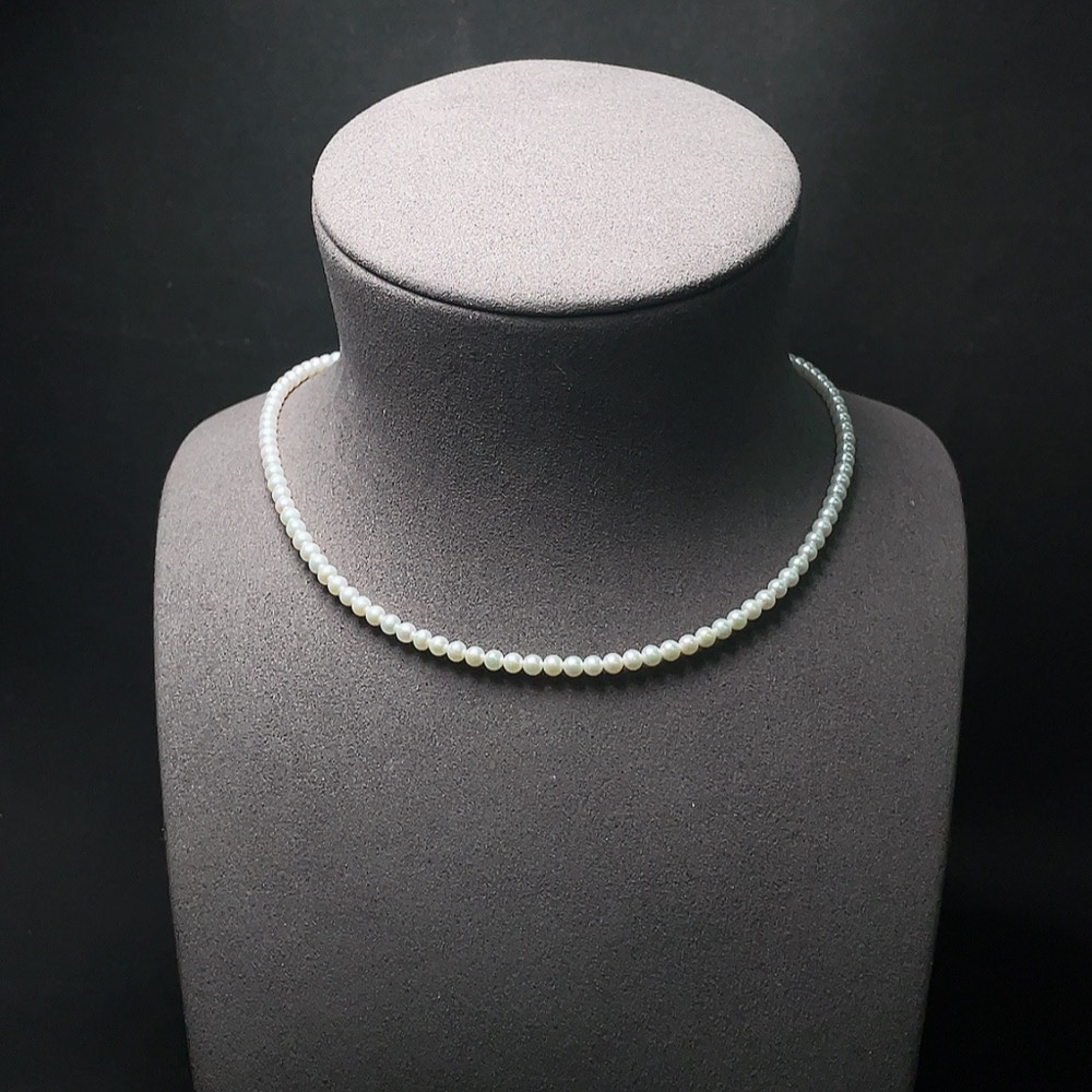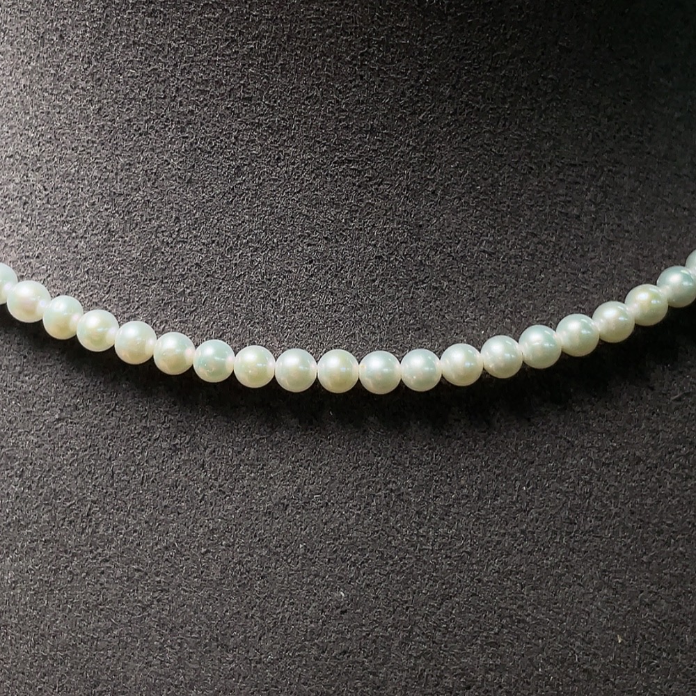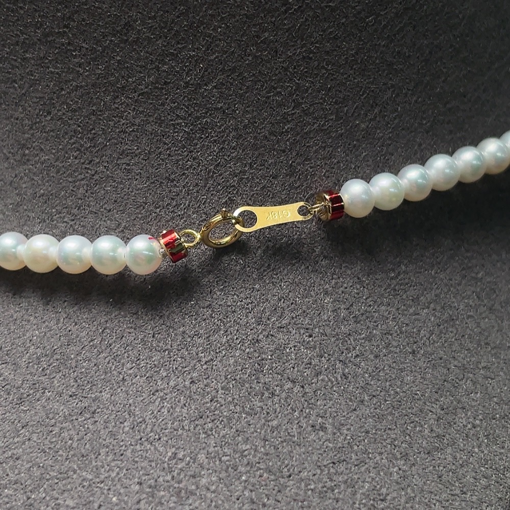 Pearl necklace marked red non-gold, rest 18k gold, total weight approx. 9g, stone size 3.8mm