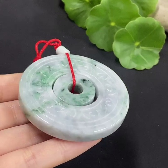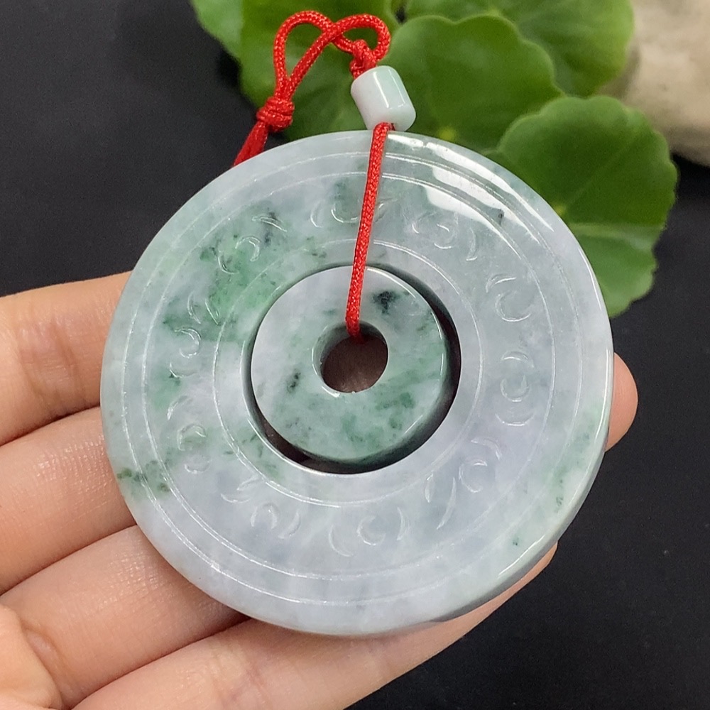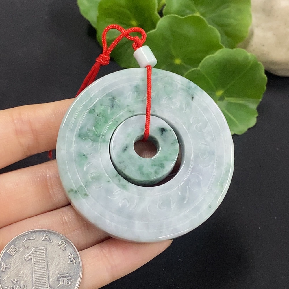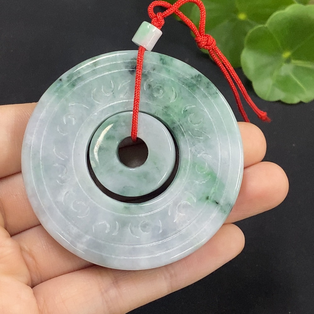 Jadeite Mother-and-Child Button Pendant Total Weight Approx. 57.3g