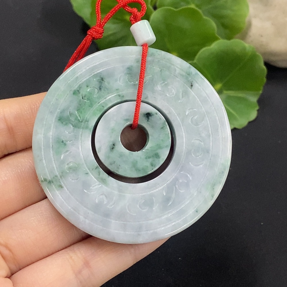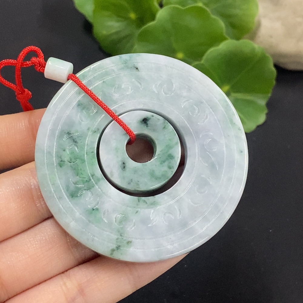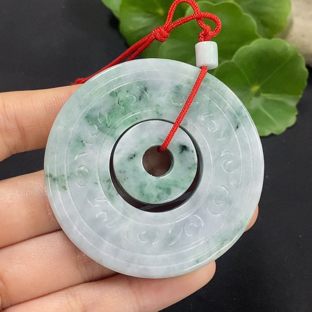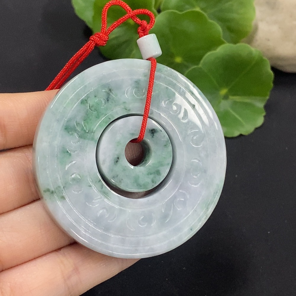 Jadeite Mother-and-Child Button Pendant Total Weight Approx. 57.3g