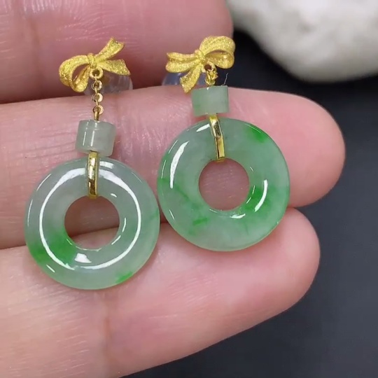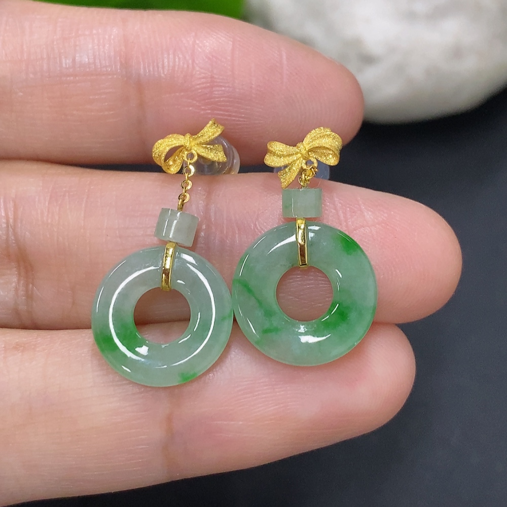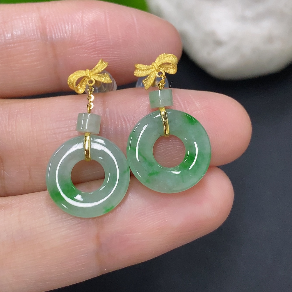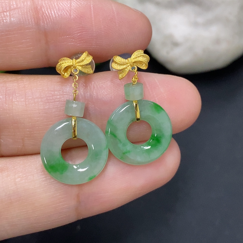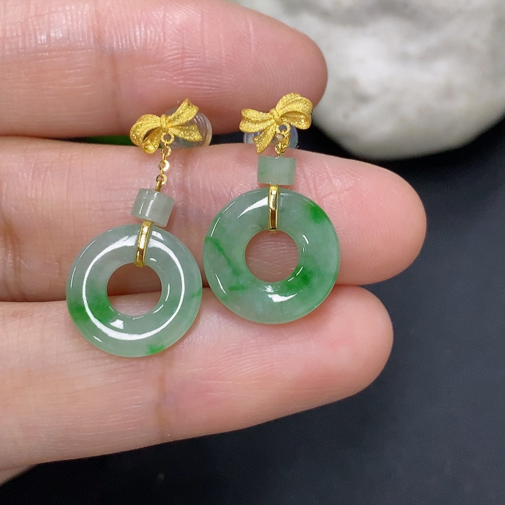 Jadeite ear studs with 18K gold setting, total weight approximately 2.1g excluding ear backs