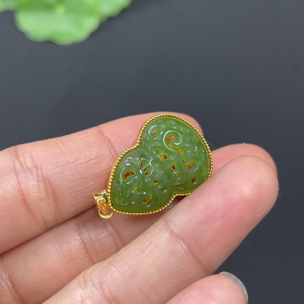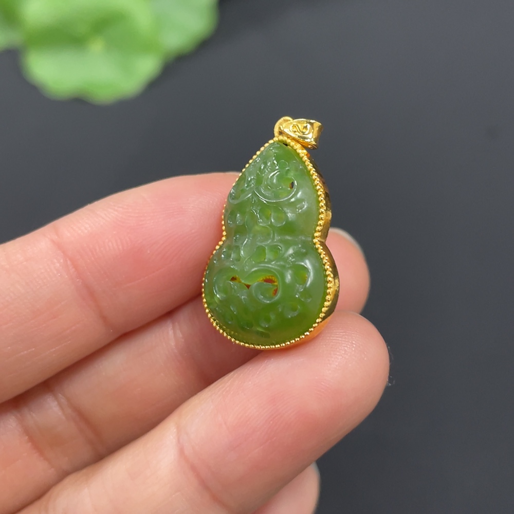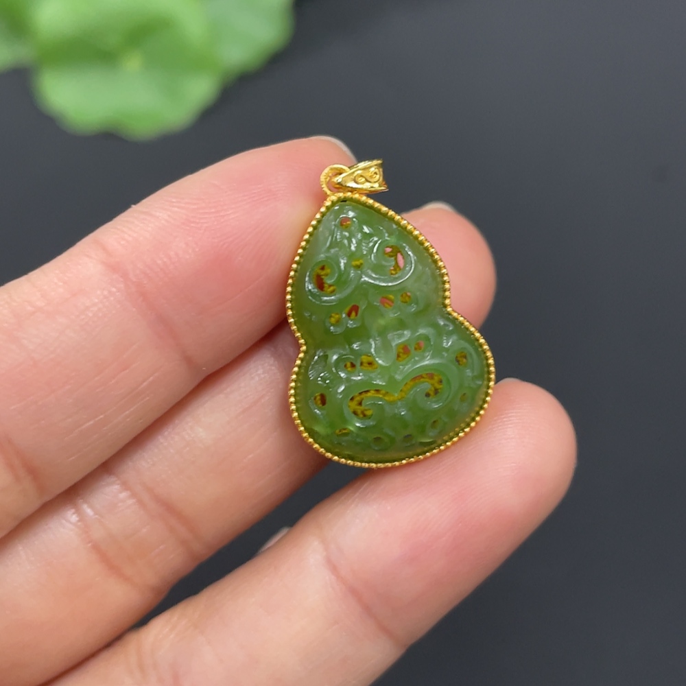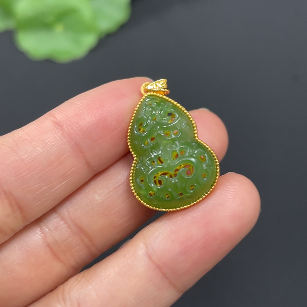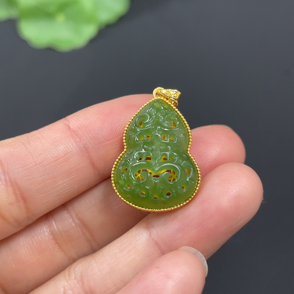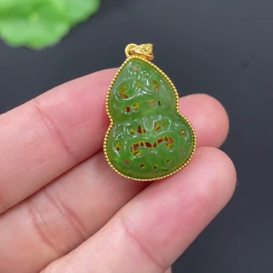 Hetian Jade Inlaid Pendant Suspected Gold-Plated Total Weight Approx. 1.5g