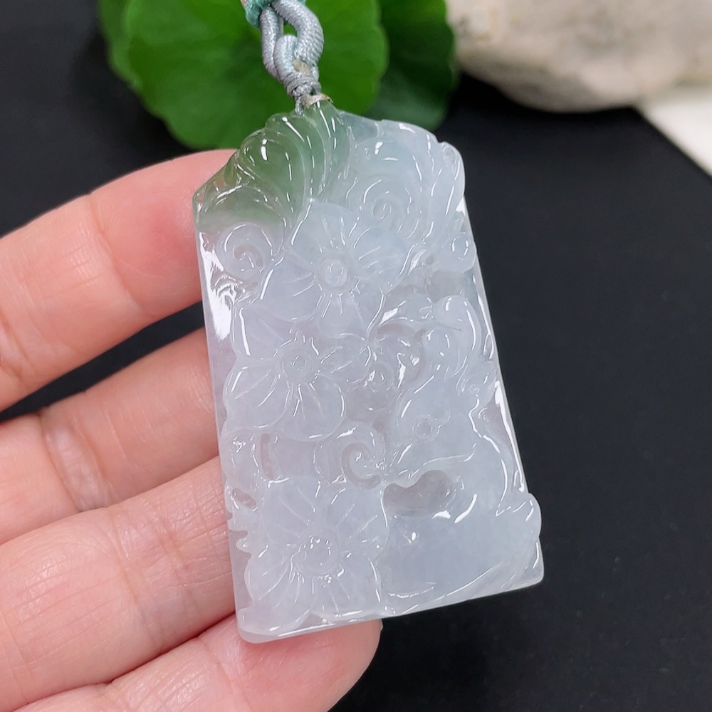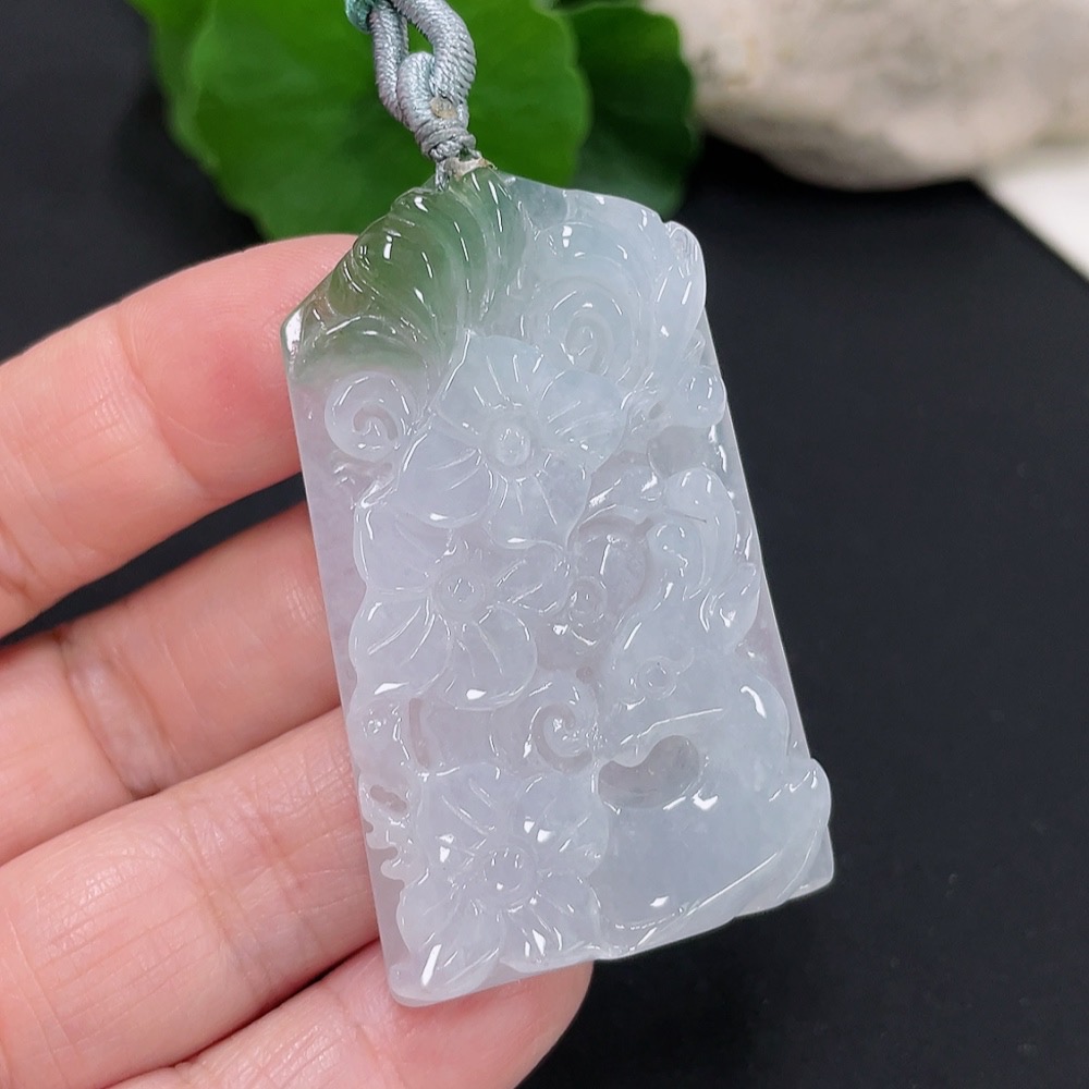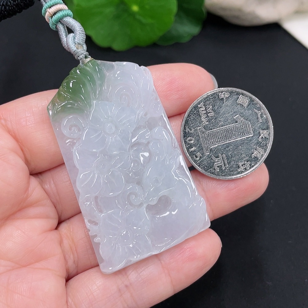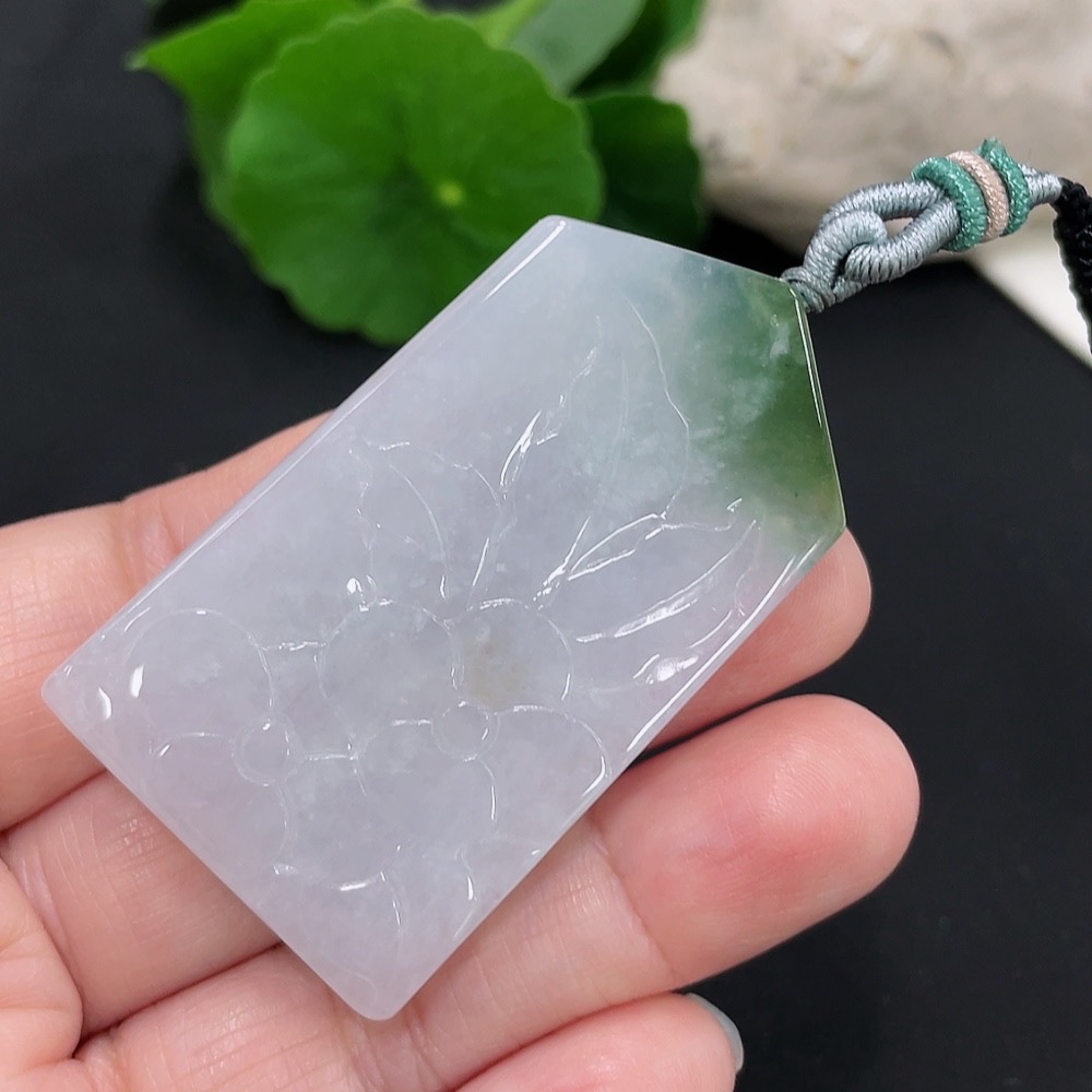 Jadeite floral plaque pendant, total weight approximately 25.4g (including cord weight)
