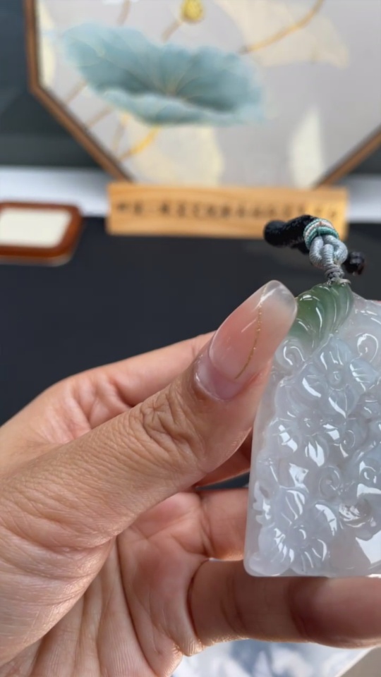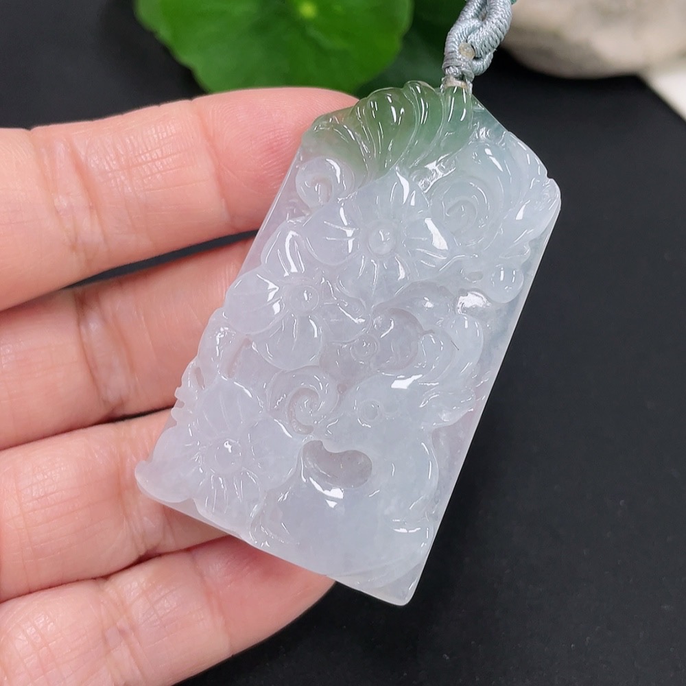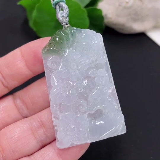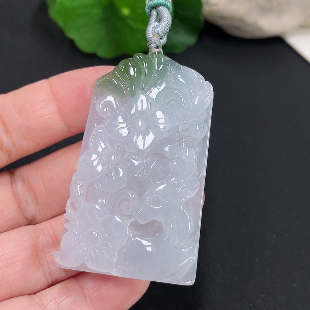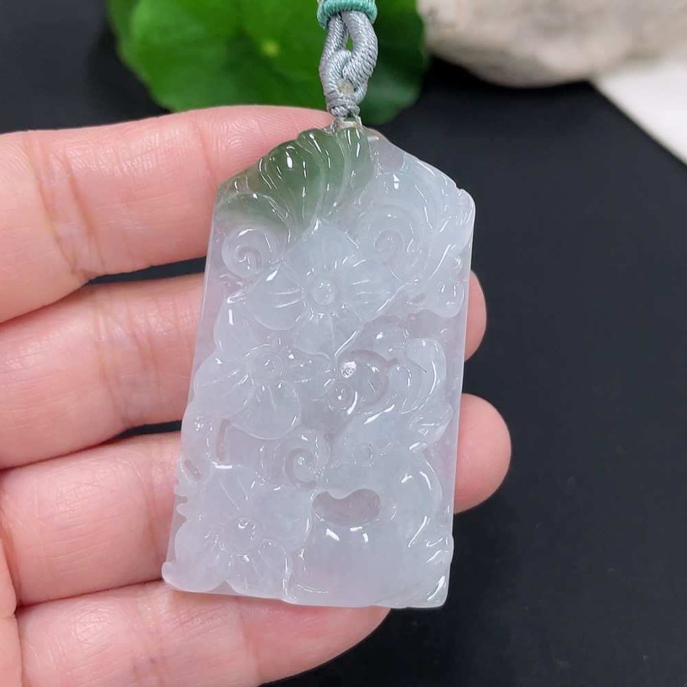 Jadeite floral plaque pendant, total weight approximately 25.4g (including cord weight)