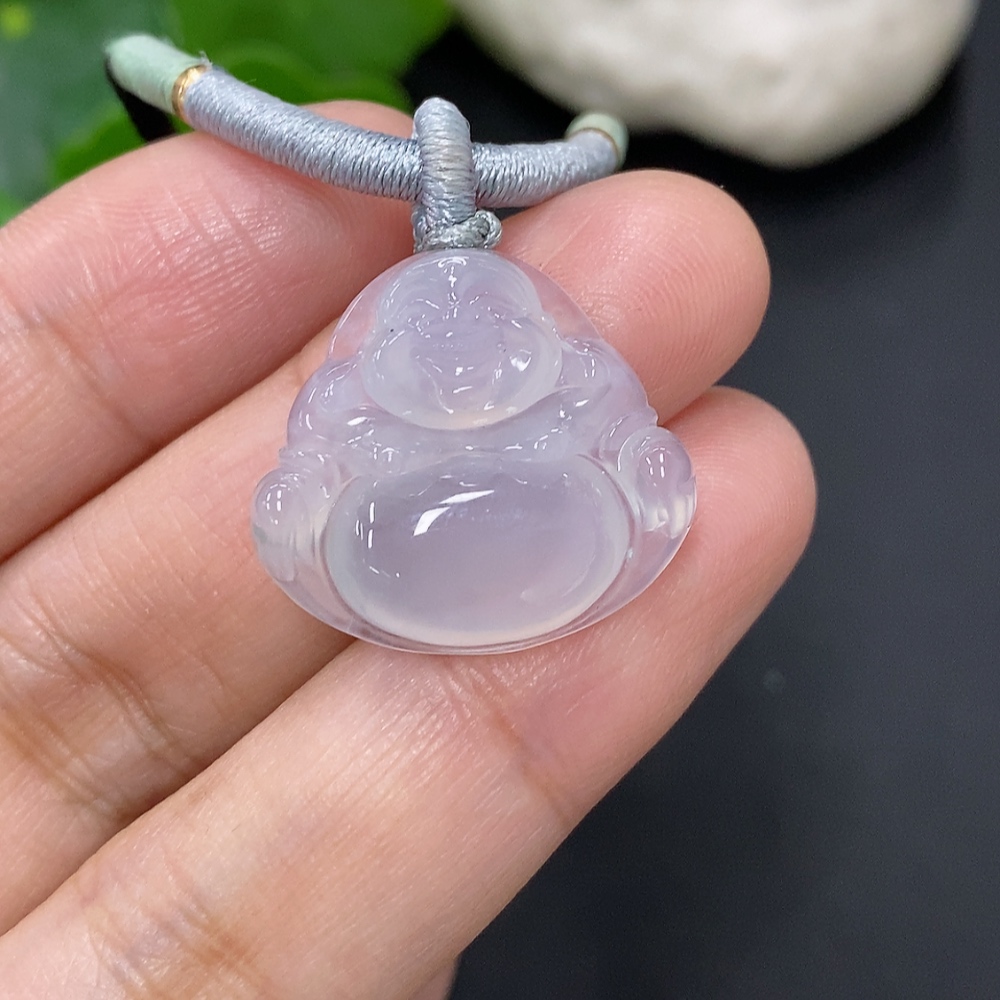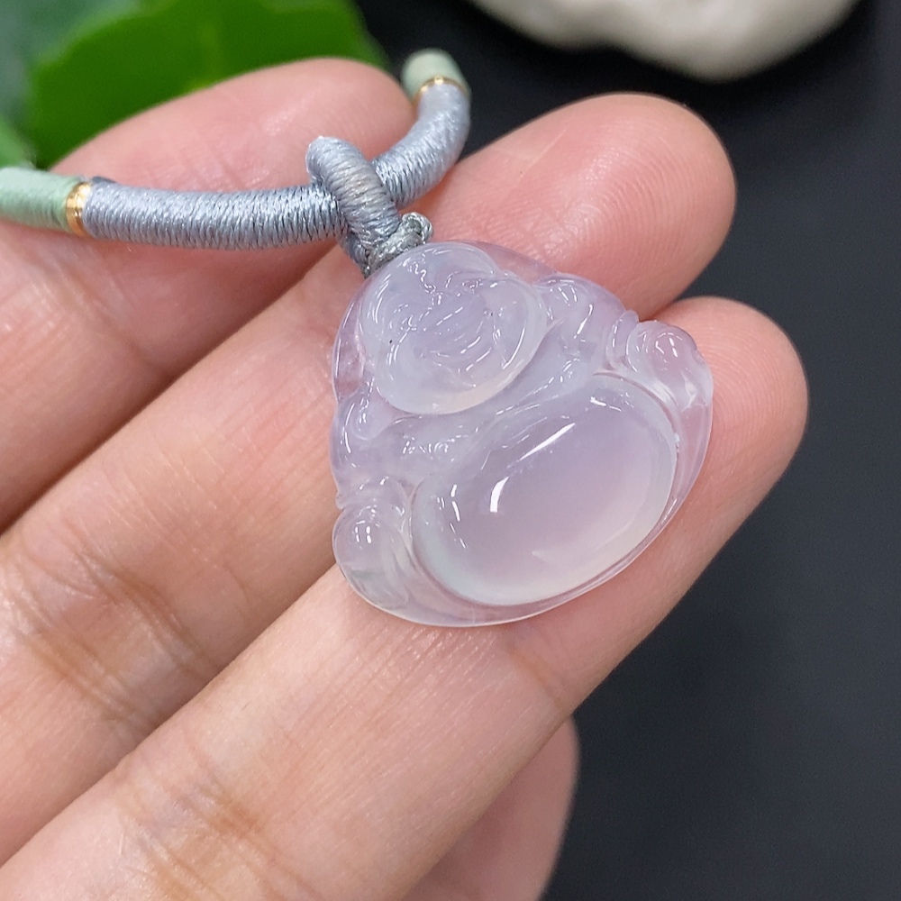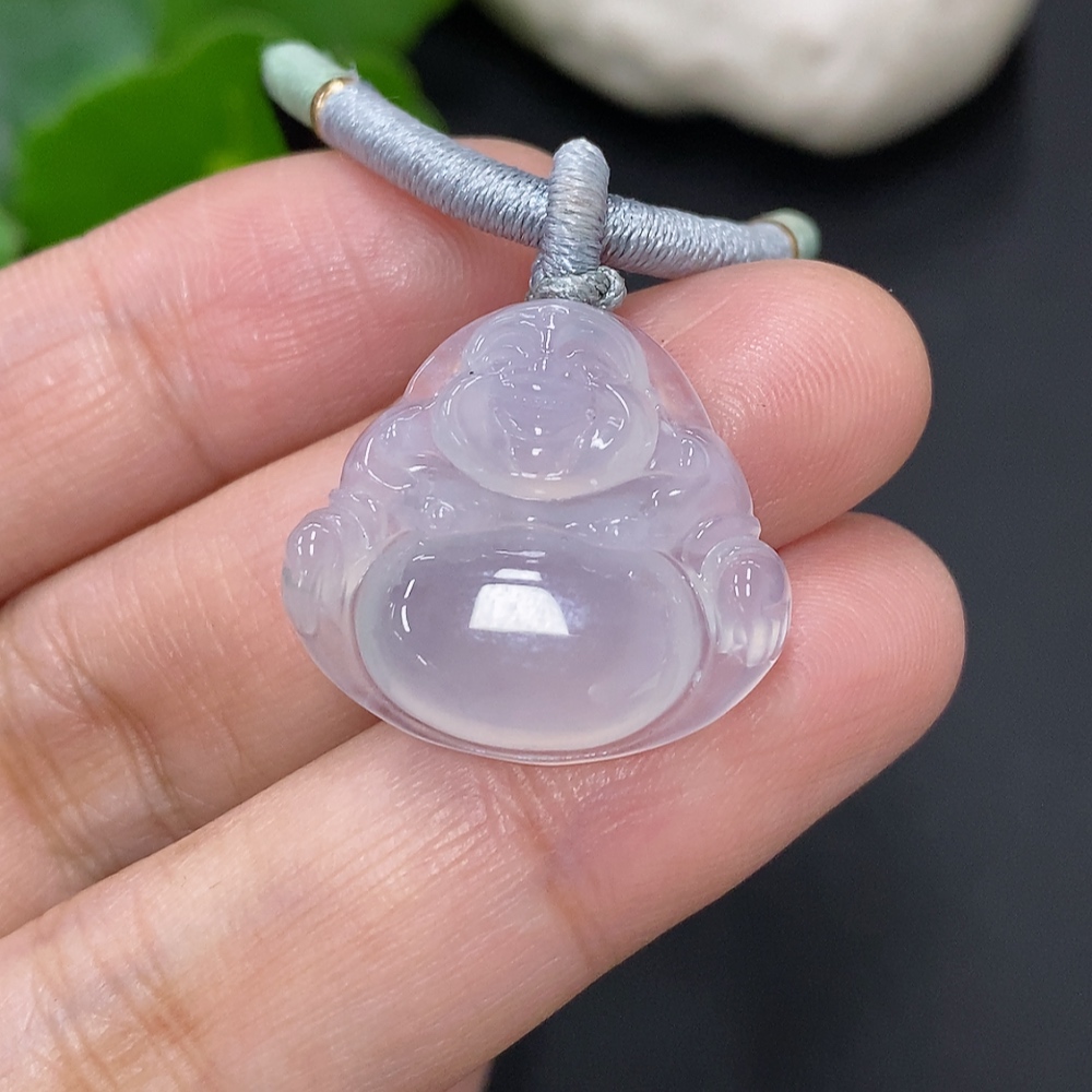 Jadeite Buddha Pendant, Total Weight Including Rope Approximately 6.6g