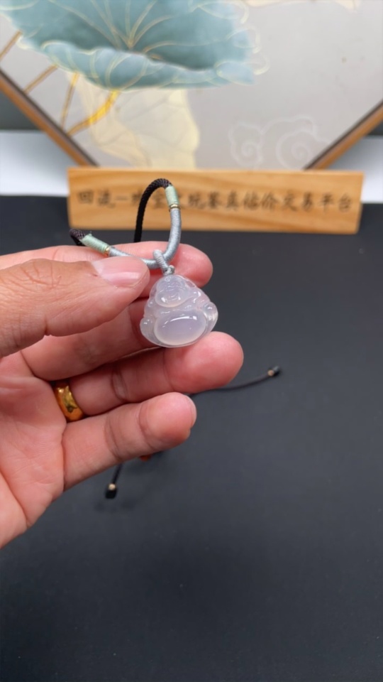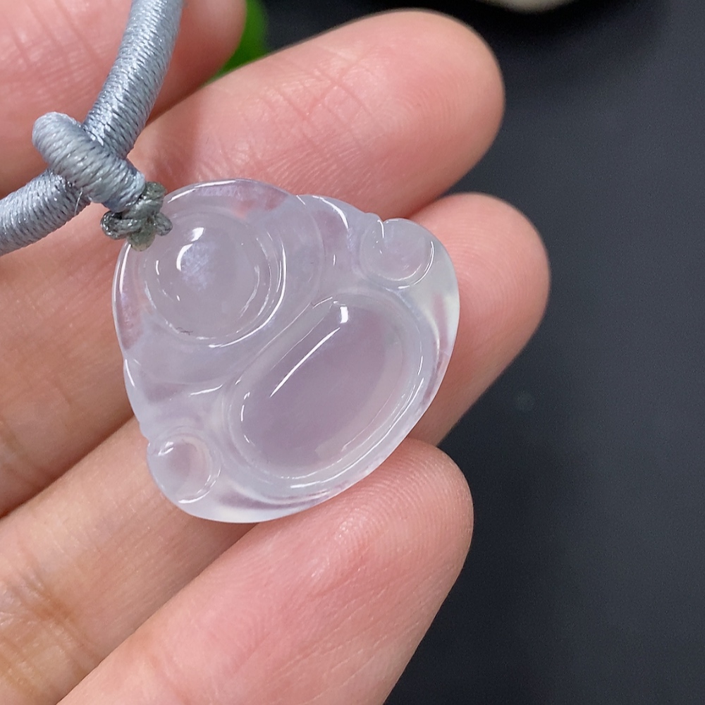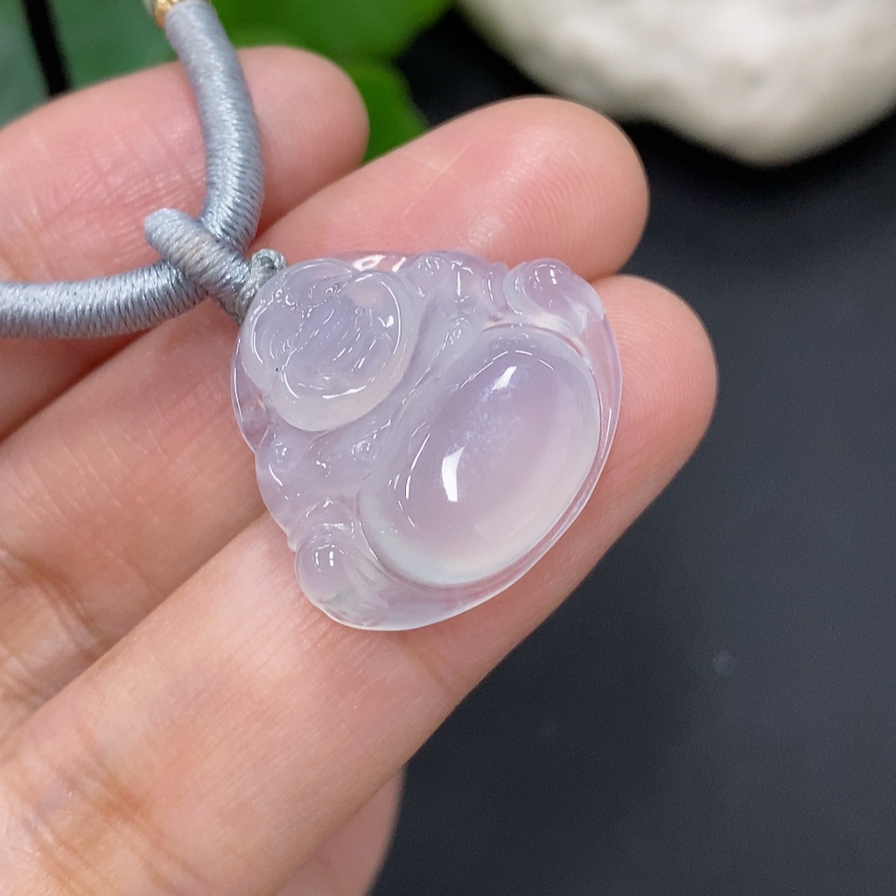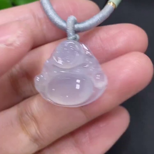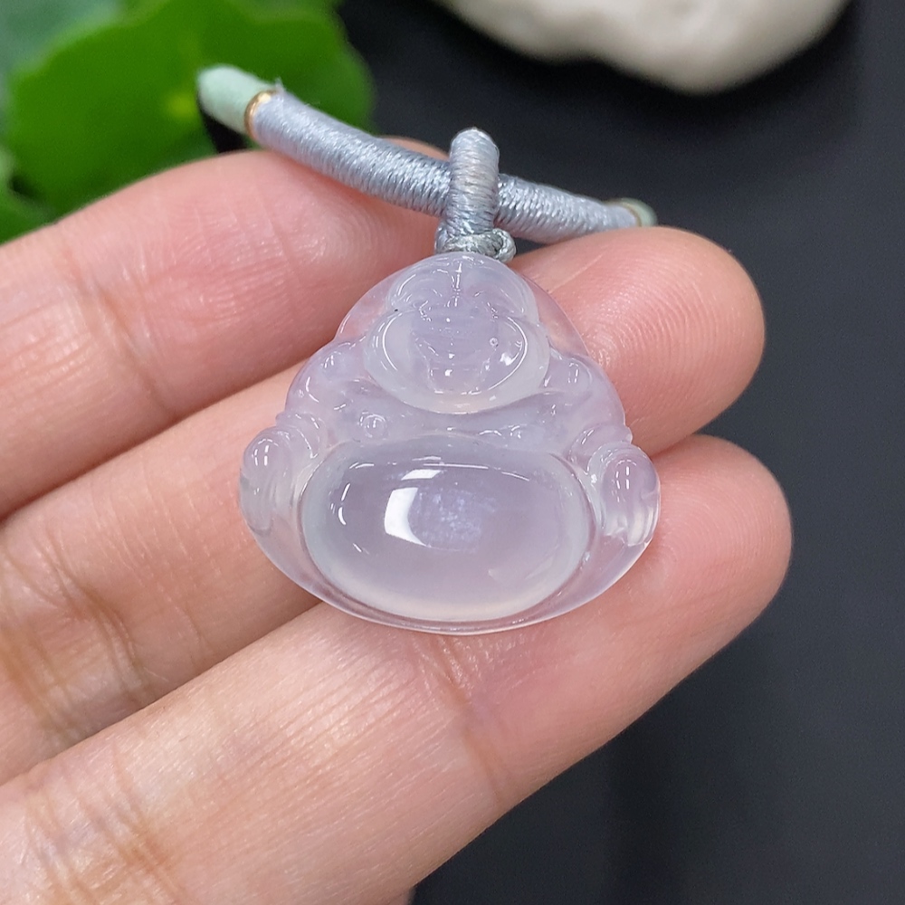 Jadeite Buddha Pendant, Total Weight Including Rope Approximately 6.6g