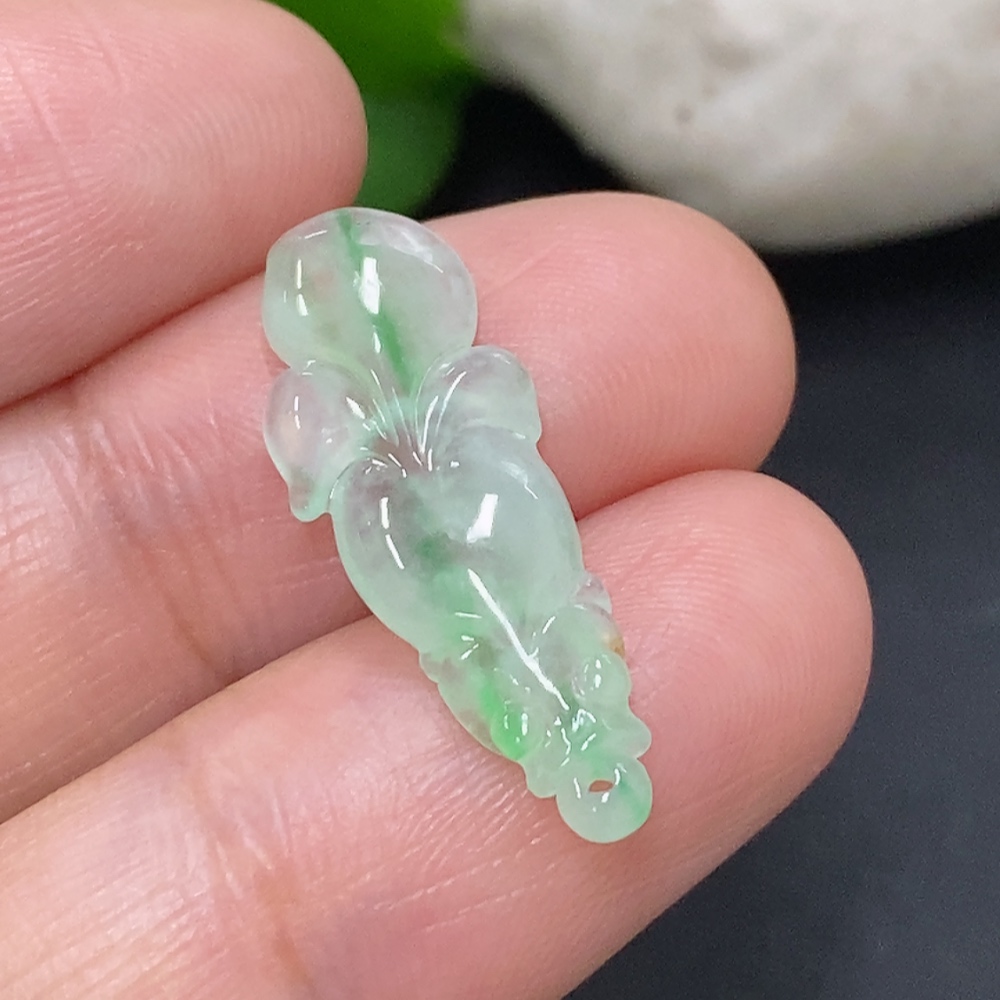 Jadeite Auspicious Abundance Every Year Pendant, Total Weight Approximately 1g