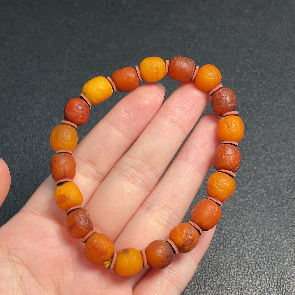 Amber Beeswax Bracelet, Total Weight Approx. 11.90g, Size About 9.1mm