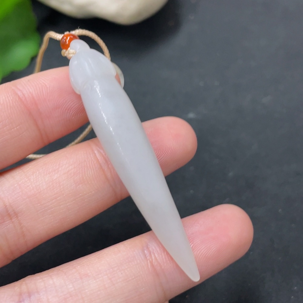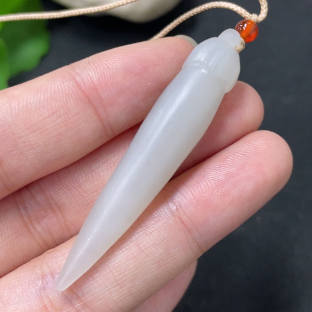 Hetian Jade Pendant with Non-Hetian Jade Beads, Total Weight Approx. 8.2g (Including Rope)