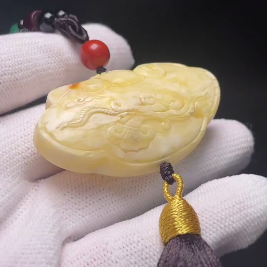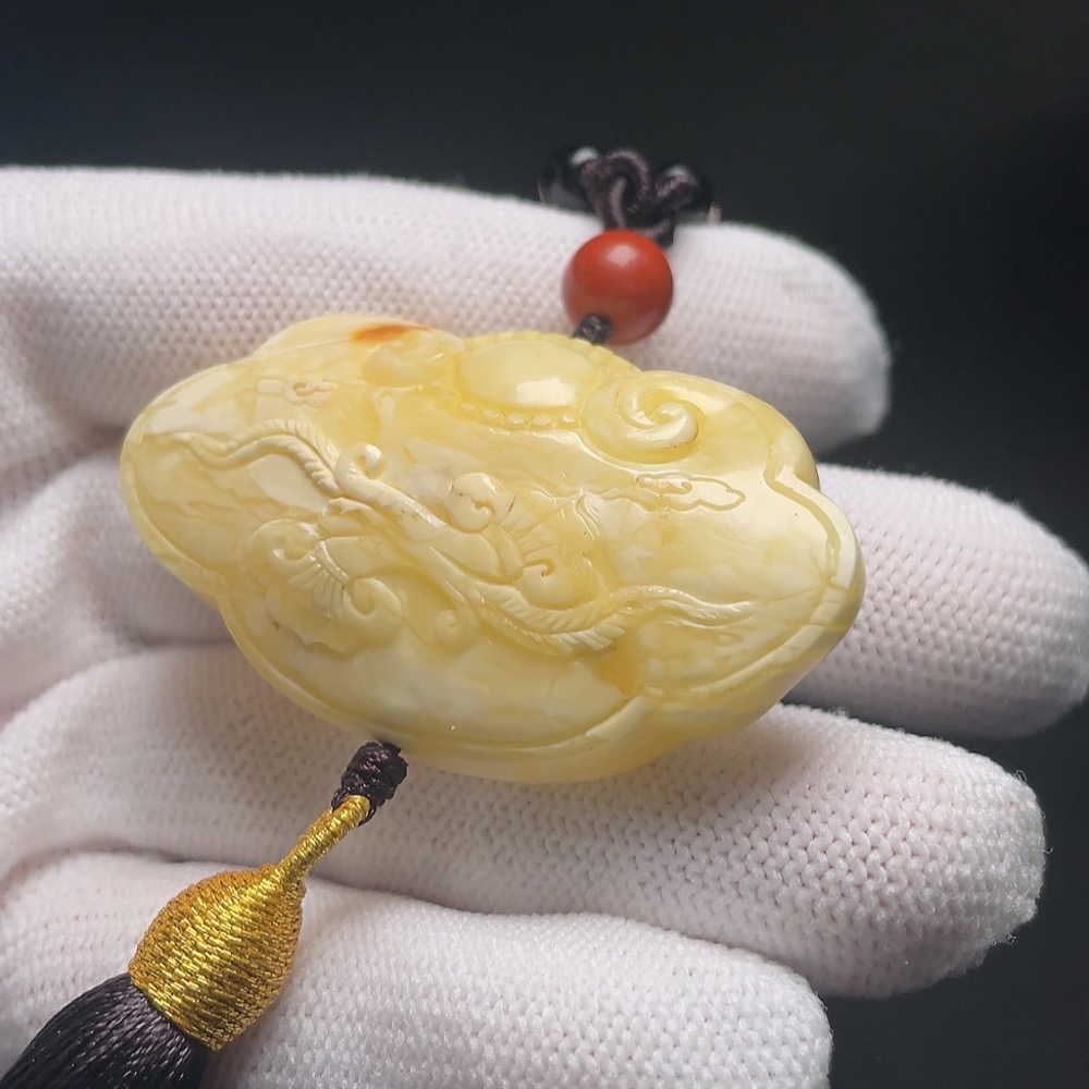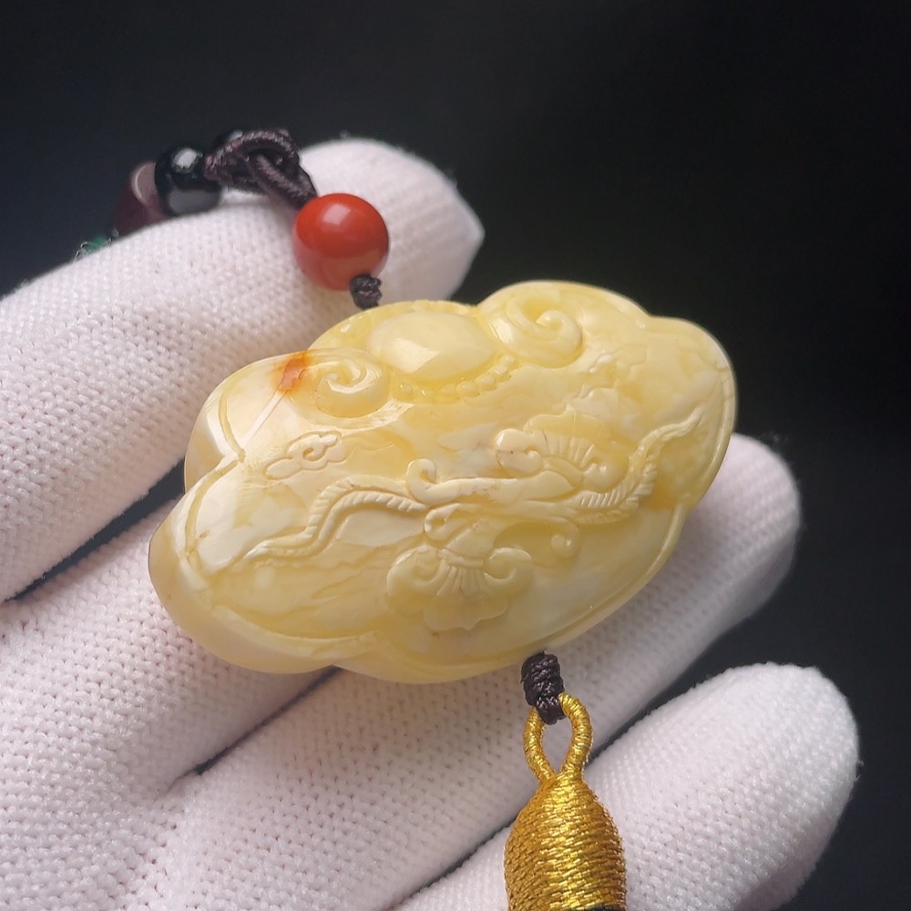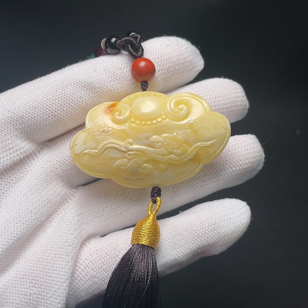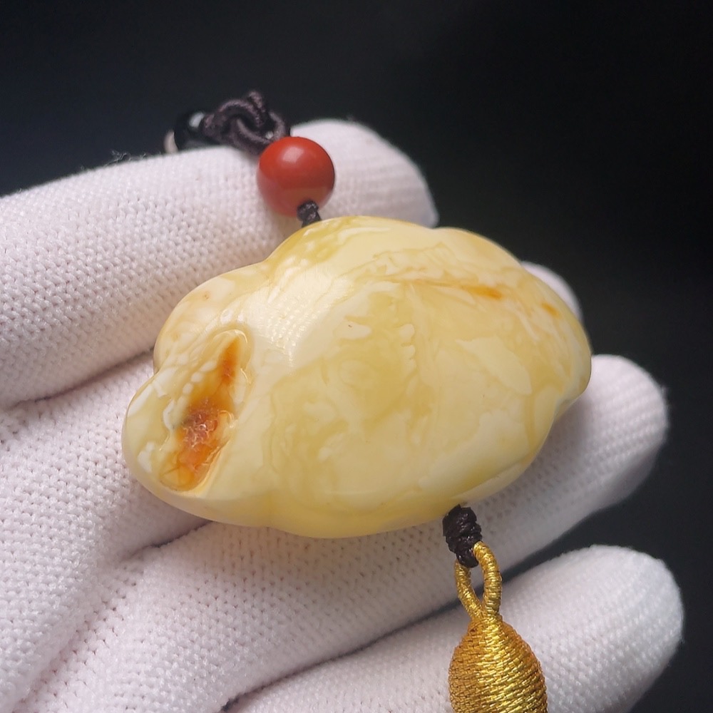 Amber Beeswax Pendant (with non-natural accent stones, including cord, total weight approx. 26.2g)