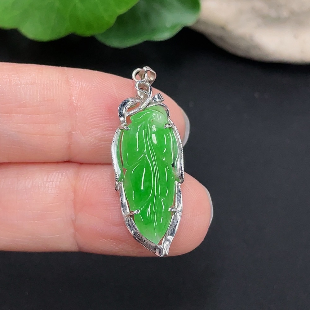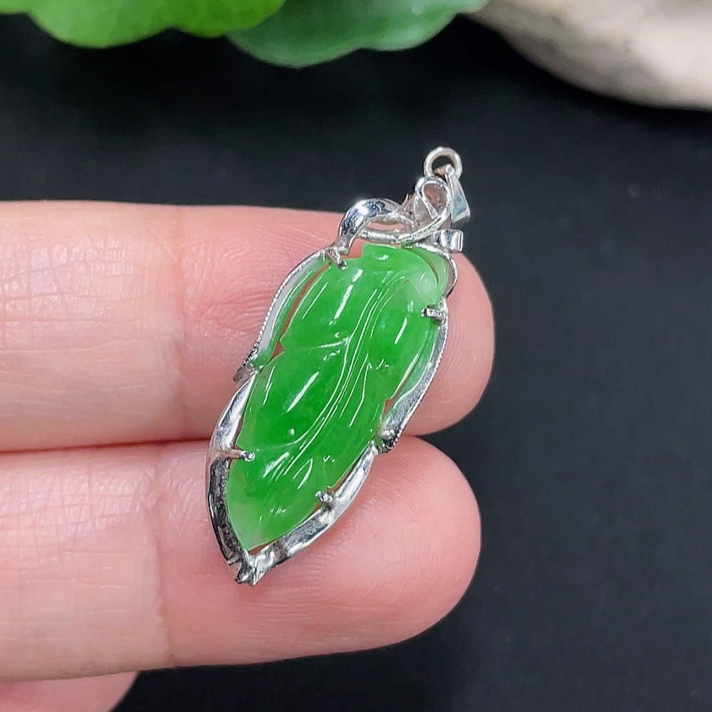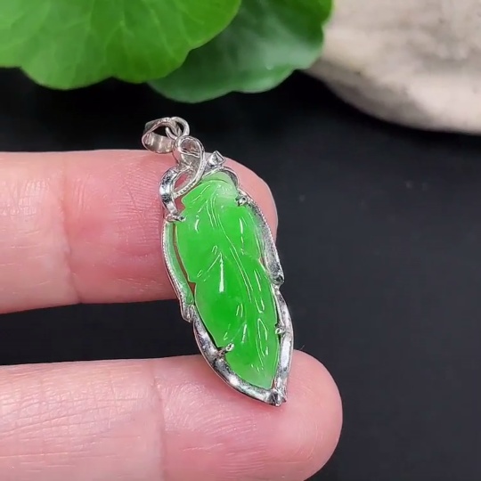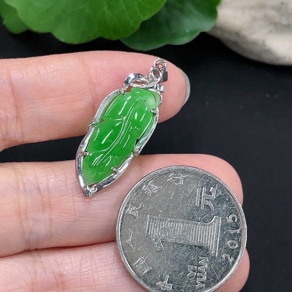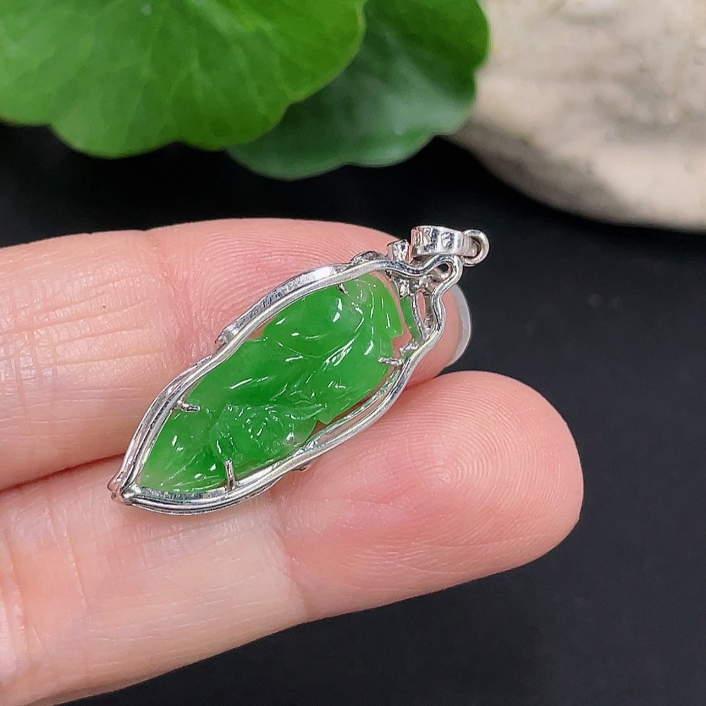Jadeite Leaf Pendant Au72% Total Weight Approx. 2.2g