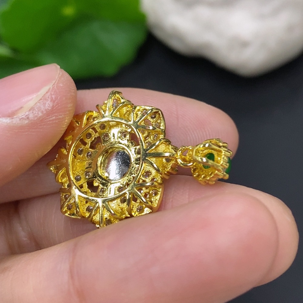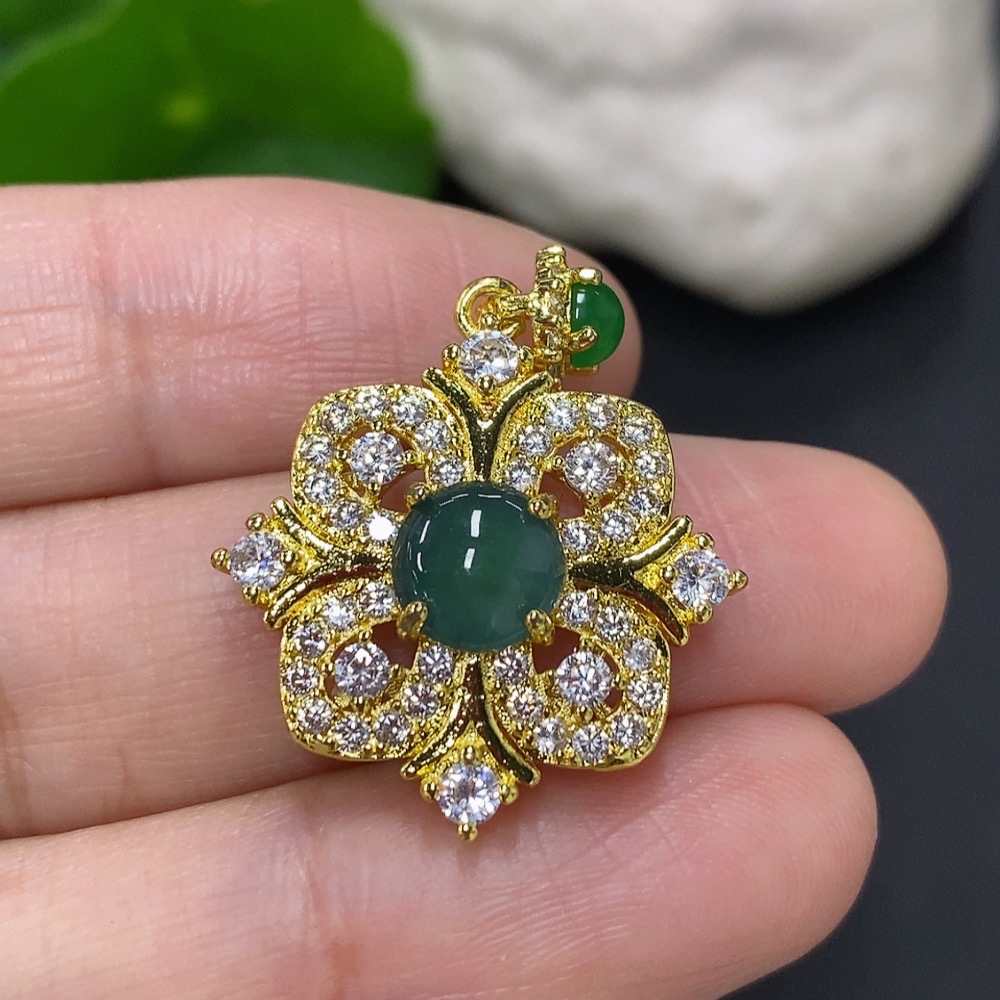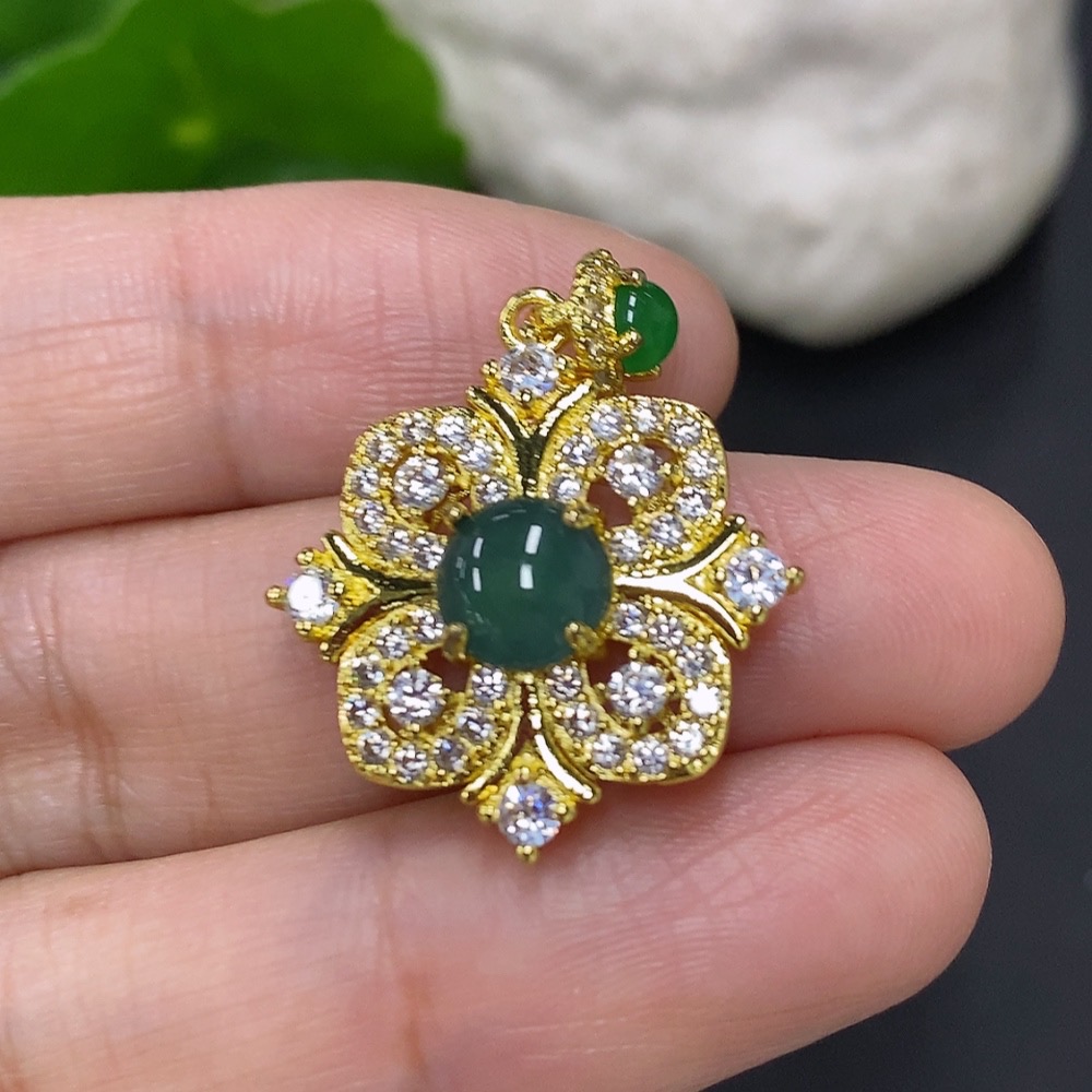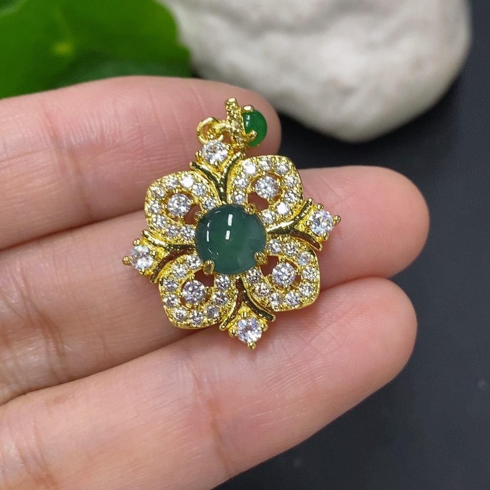 Jadeite cabochon pendant non-gold setting, total weight approx. 3g, non-jadeite beaded accessory