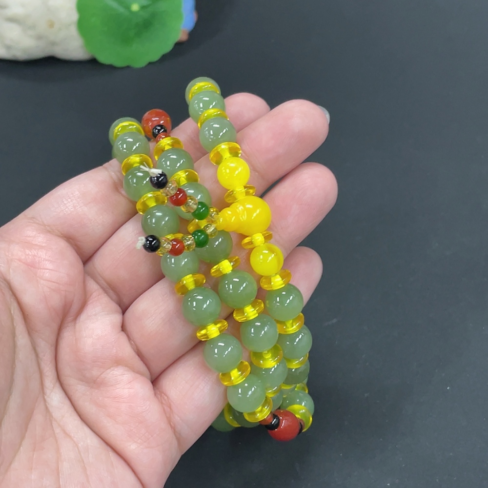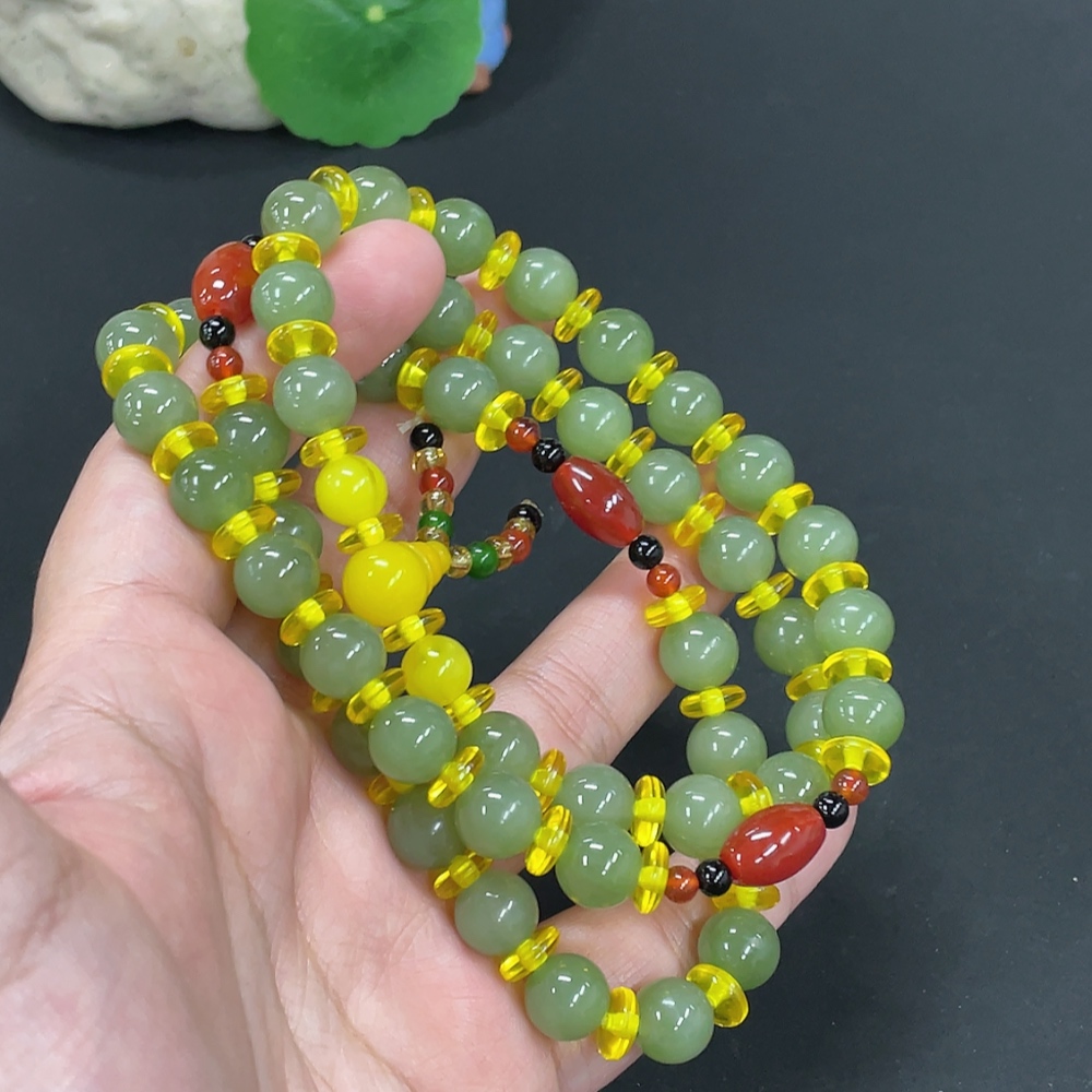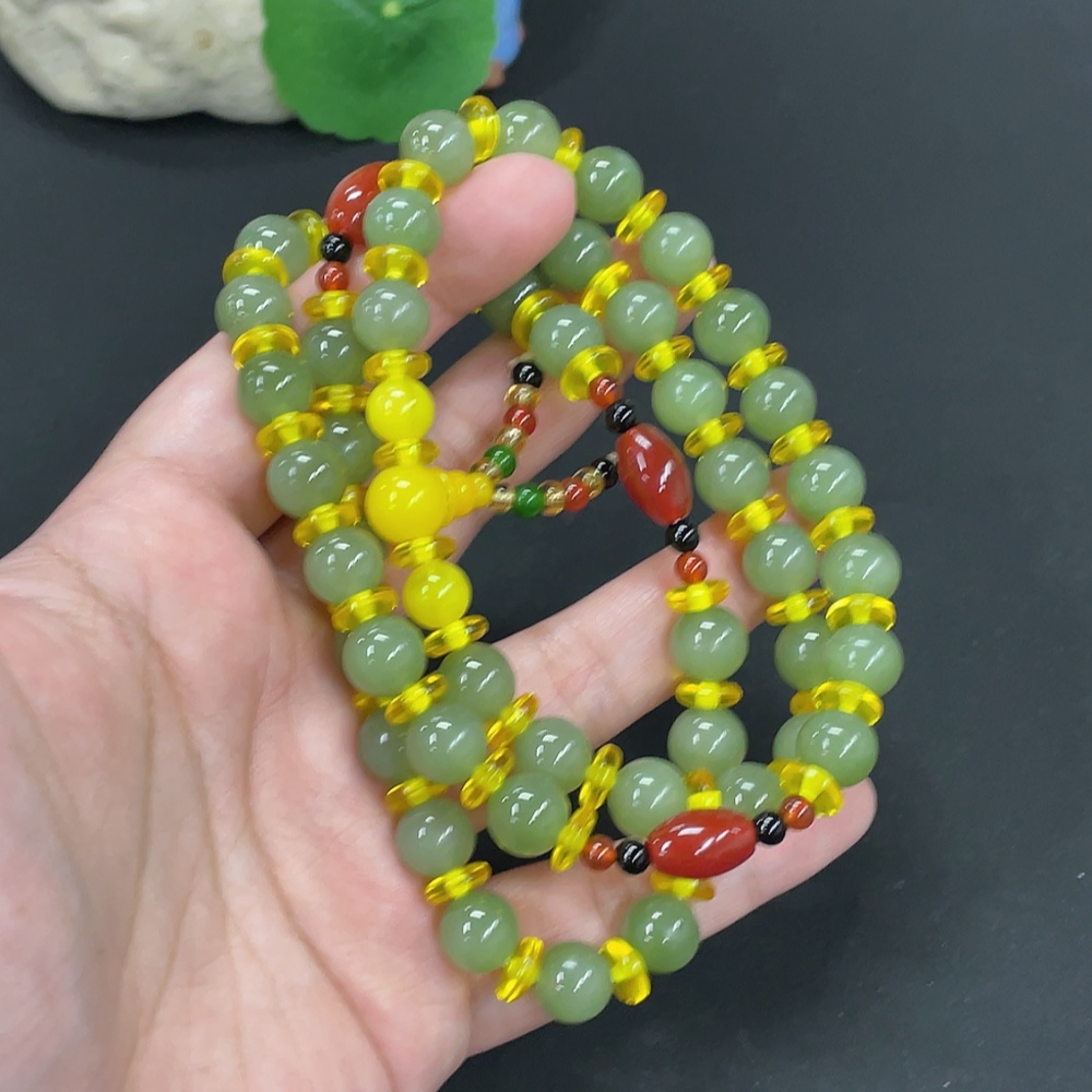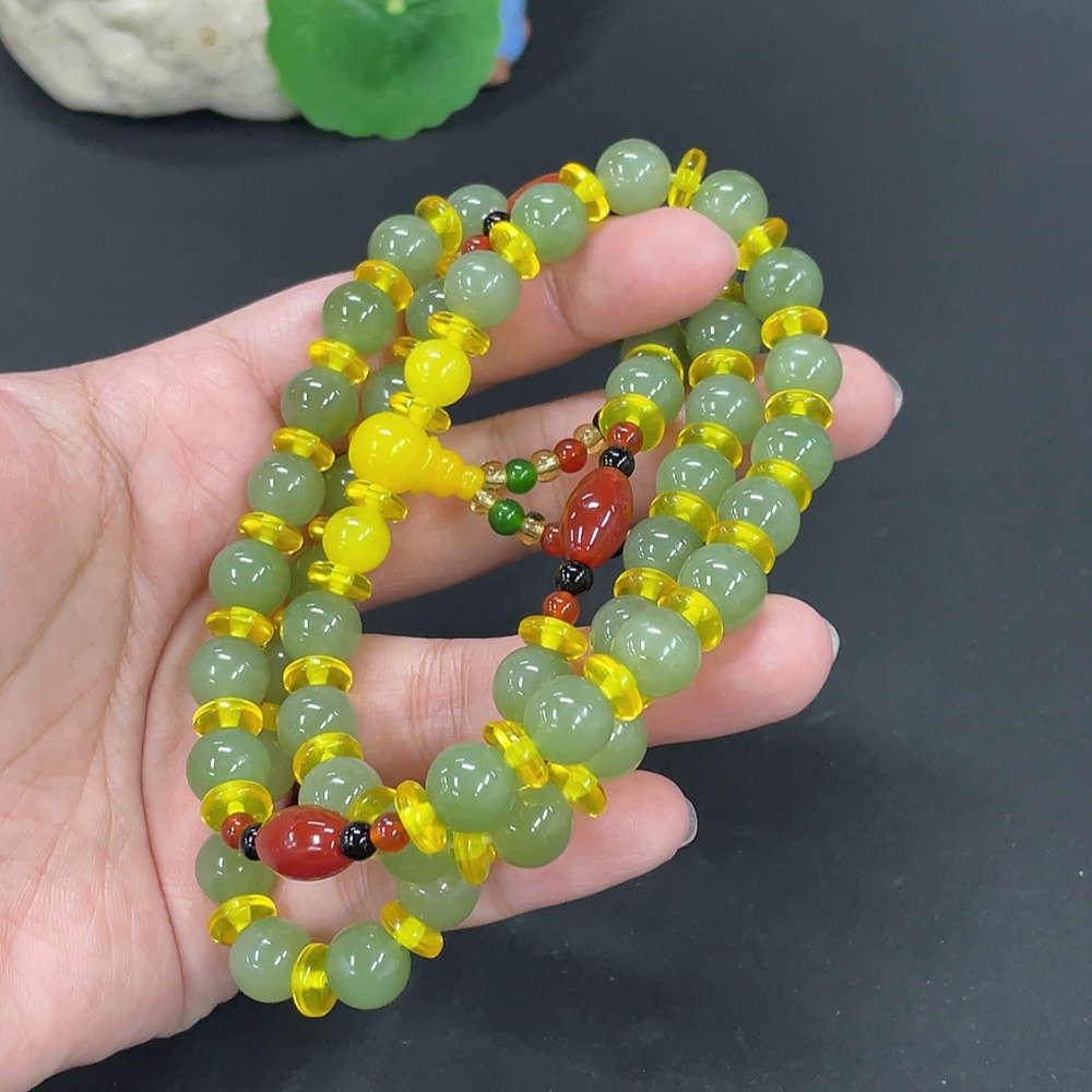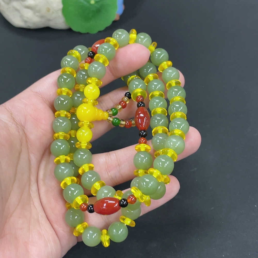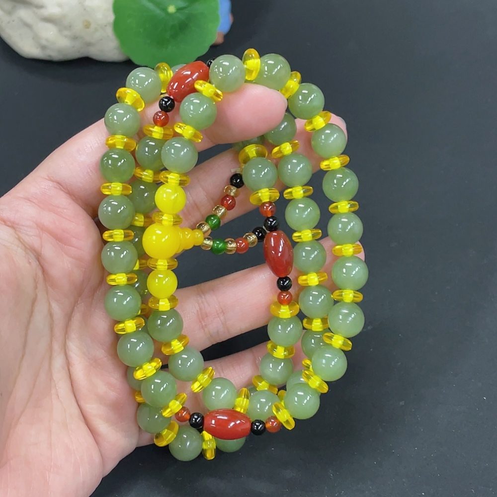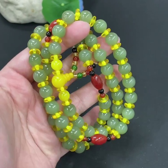 Hetian Jade Bead Necklace, Approx. 9.6mm, Total Weight Approx. 79.4g, Non-Hetian Jade Beads Included