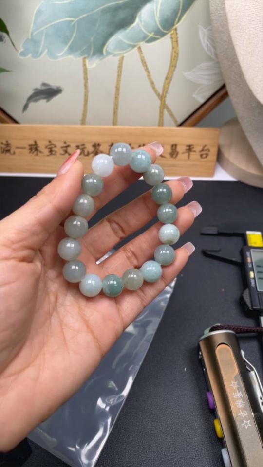 Jadeite Bead Necklace Approximately 11mm Total Weight About 38.7g