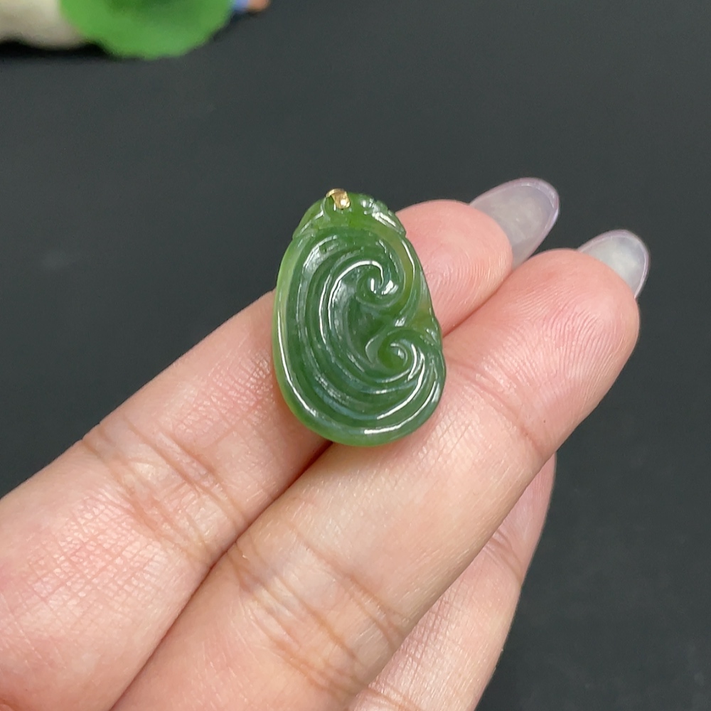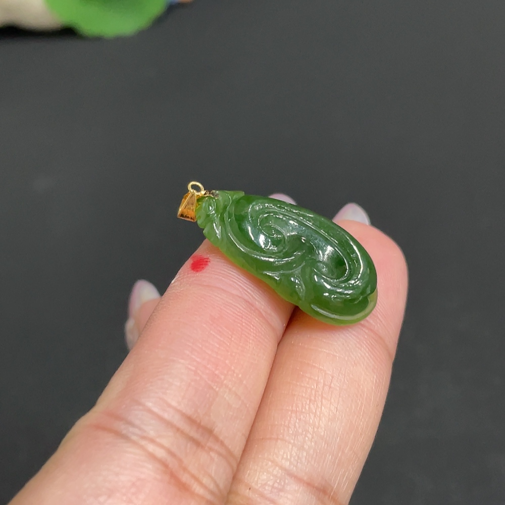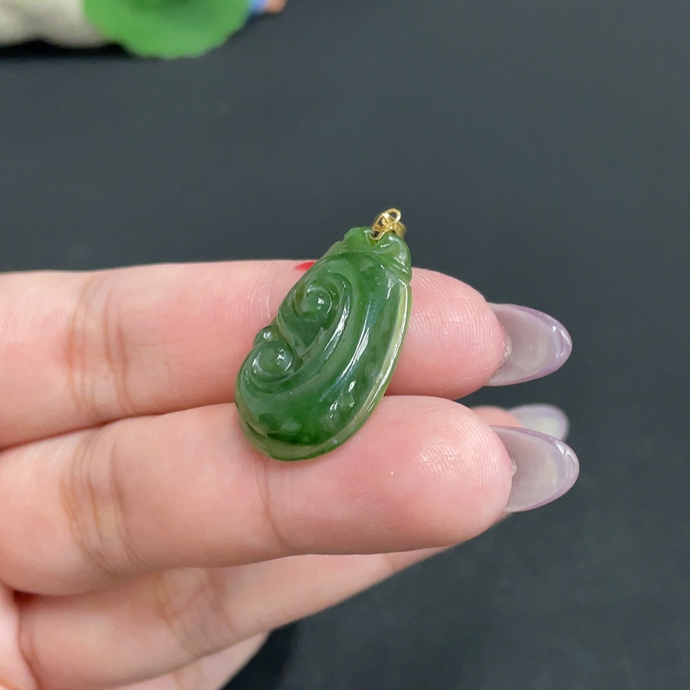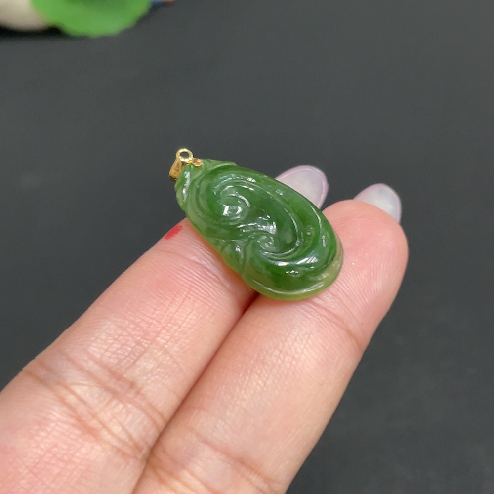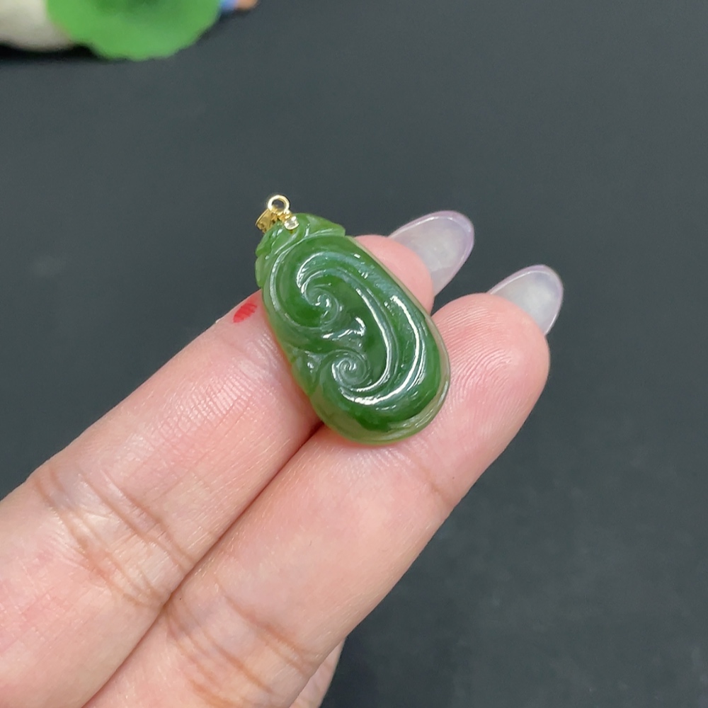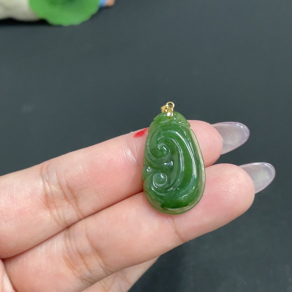 Hetian Jade Inlaid Pendant Ruyi Total Weight Approx. 3.4g 18k