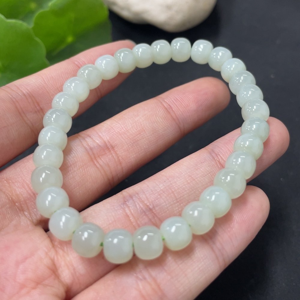 Hetian Jade Bracelet, approx. 7mm beads, total weight approx. 15.8g