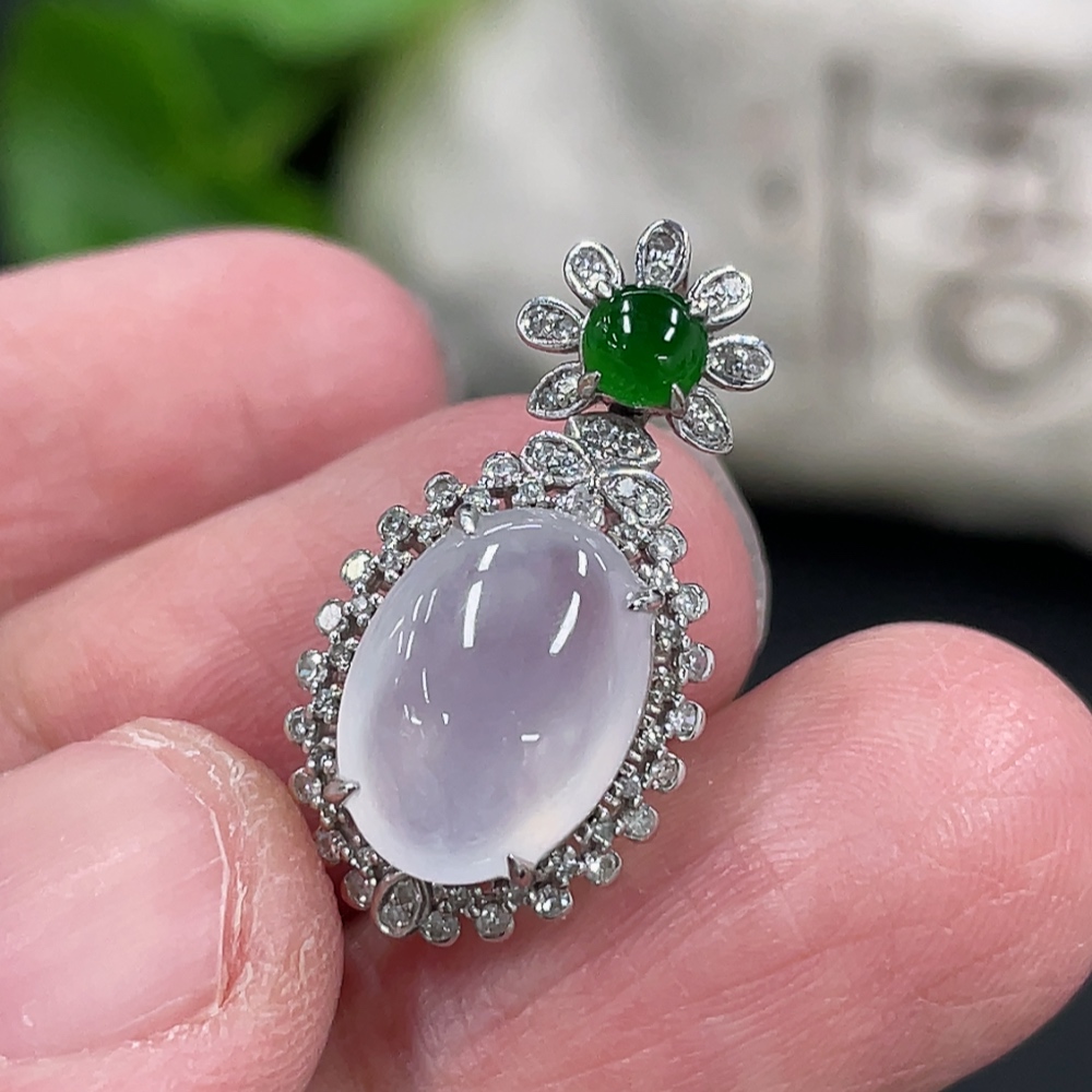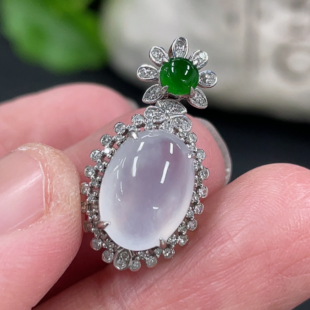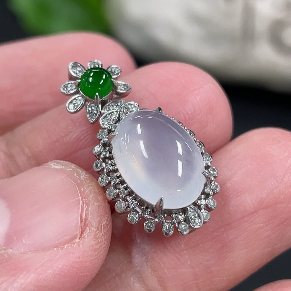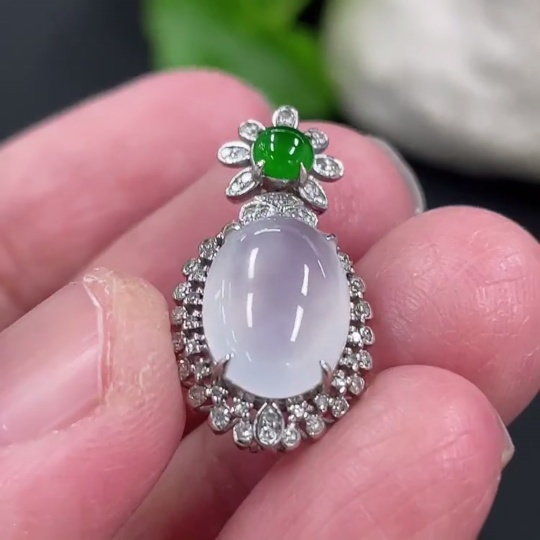Jadeite Cabochon Pendant, 18K Gold Setting with Diamond Accents, Total Weight Approx. 2.25g