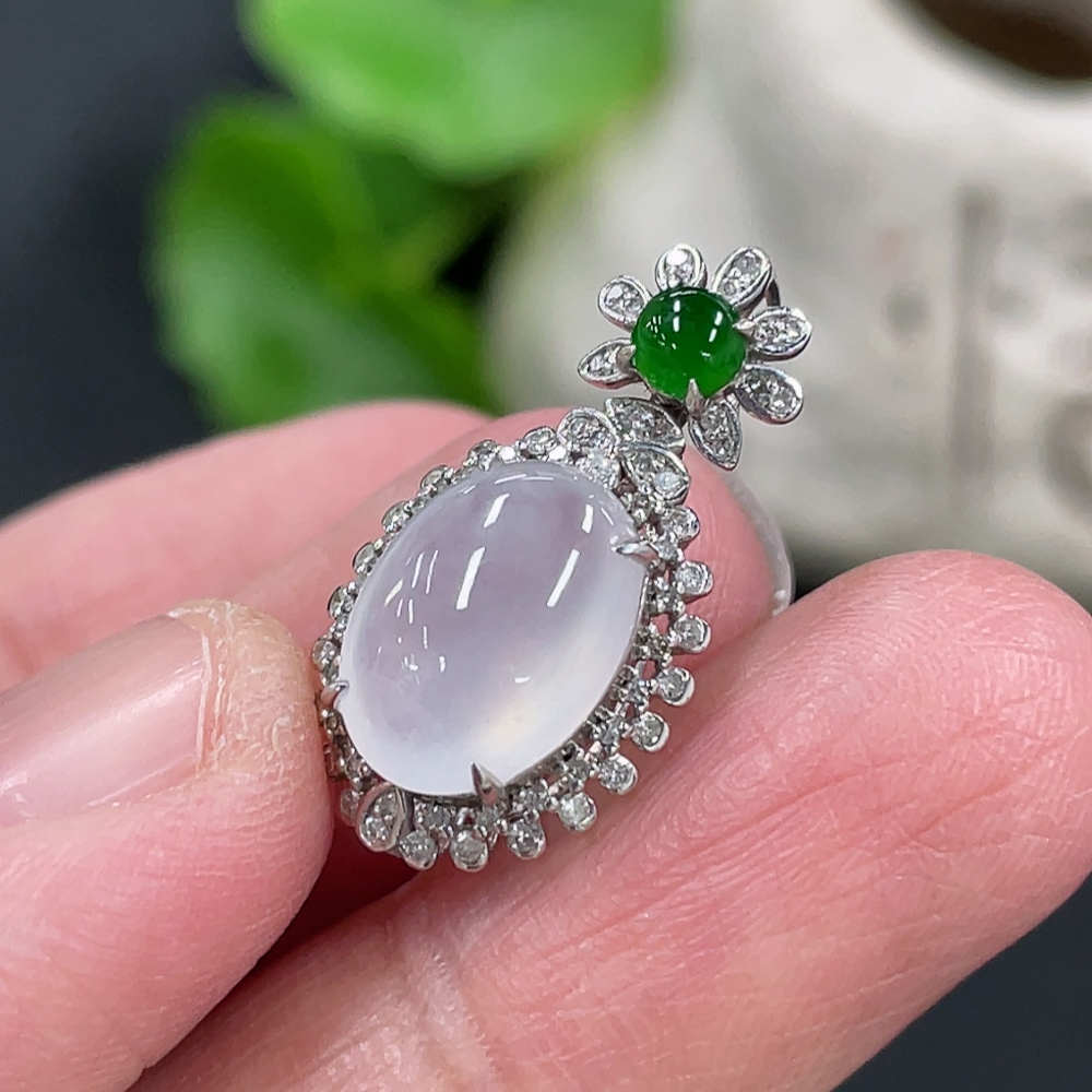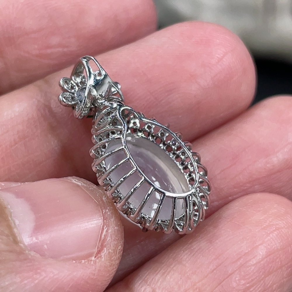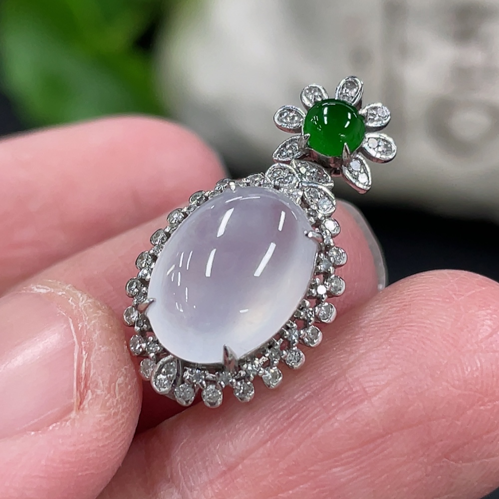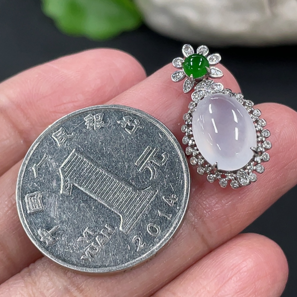 Jadeite Cabochon Pendant, 18K Gold Setting with Diamond Accents, Total Weight Approx. 2.25g
