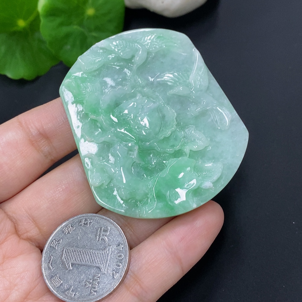 Jadeite Flower of Wealth and Honor Pendant, Total Weight Approx. 31.3g