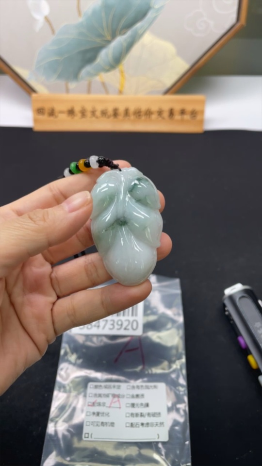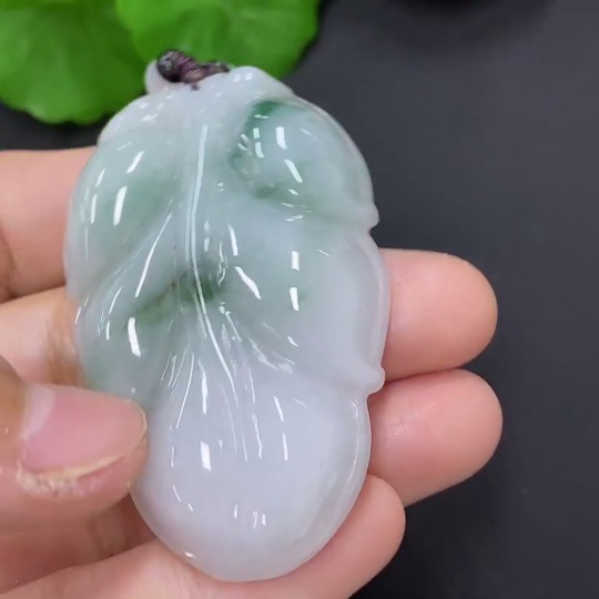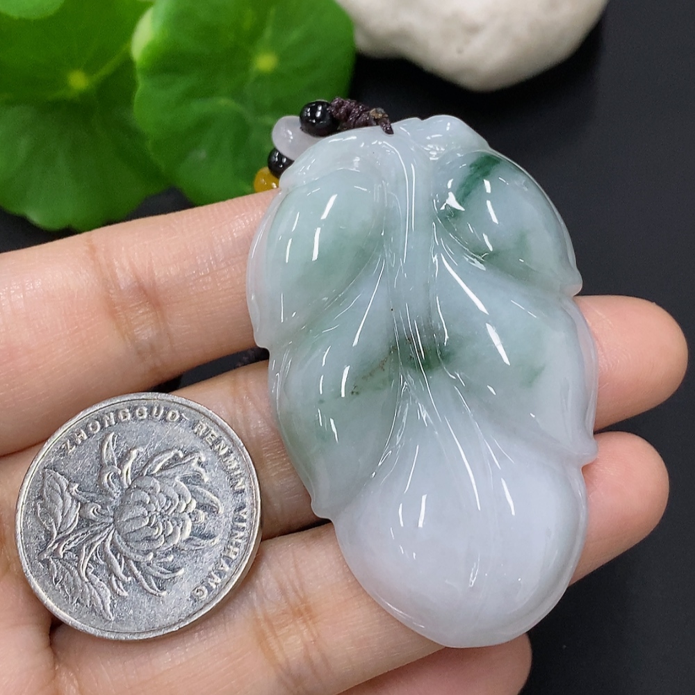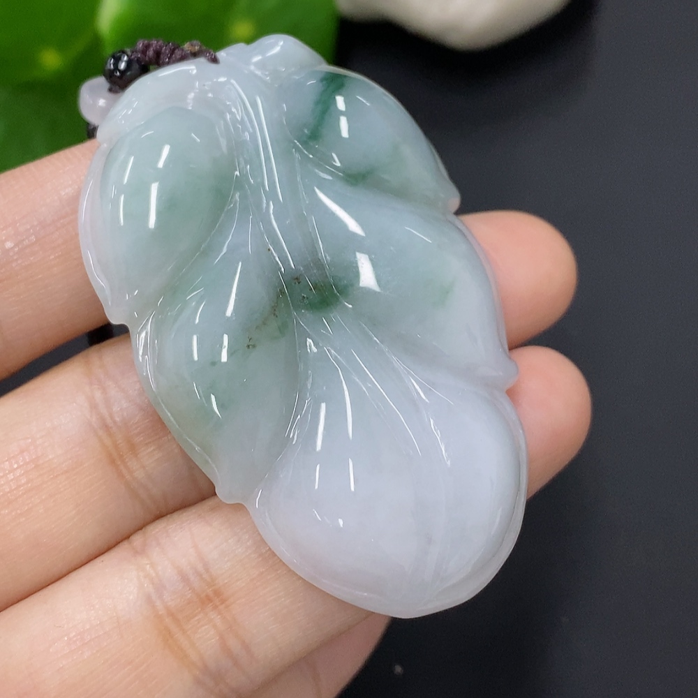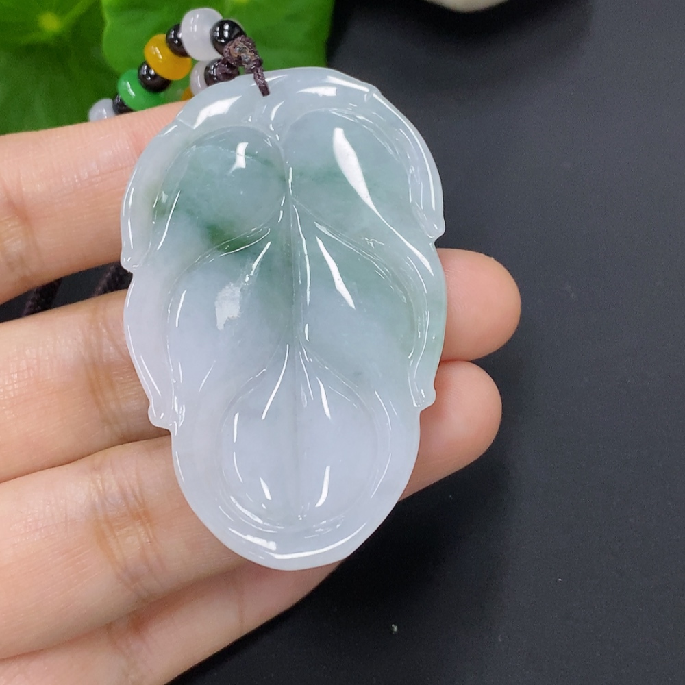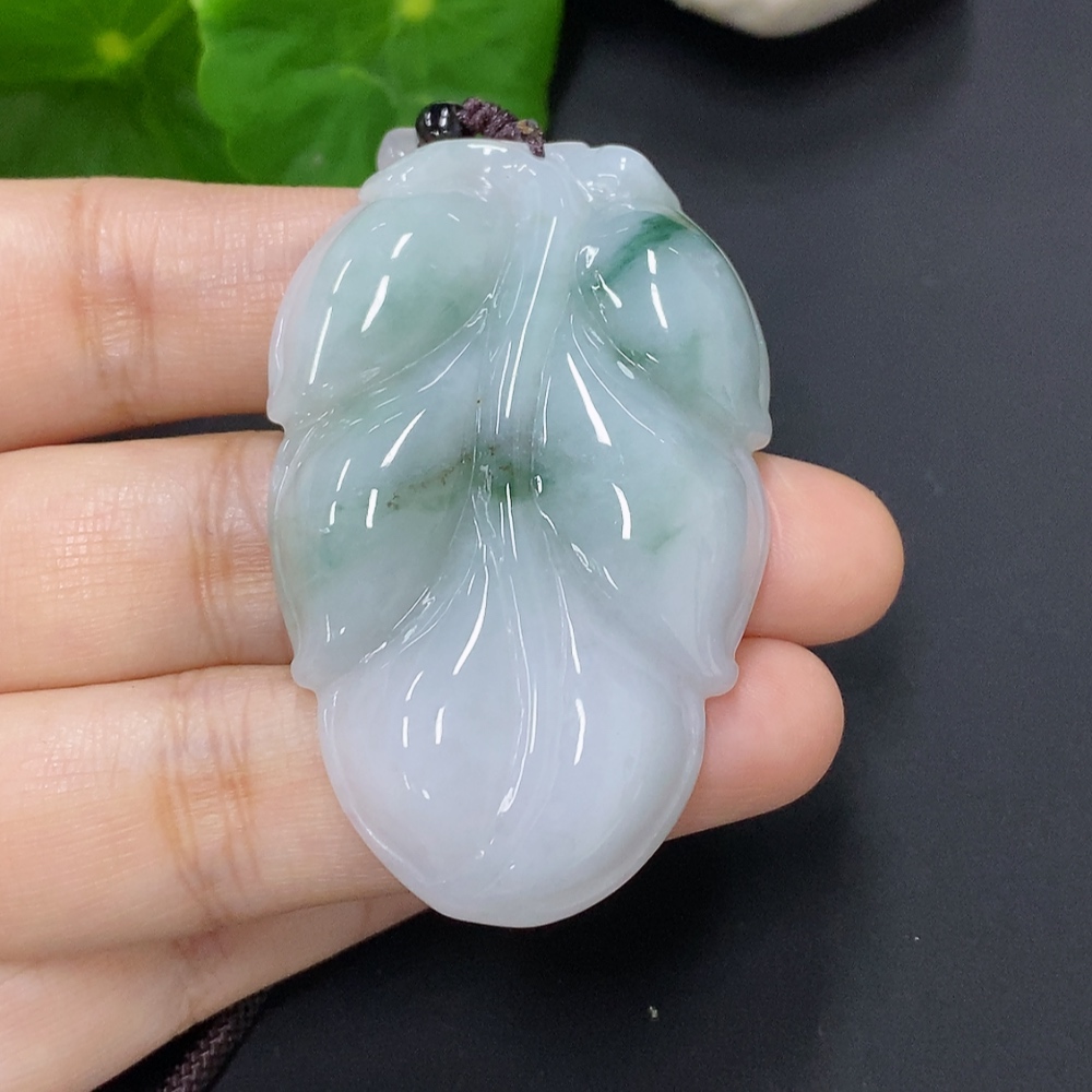 Jadeite Leaf Pendant Total Weight with Rope Approx. 34.1g (Beads Not Grade A)