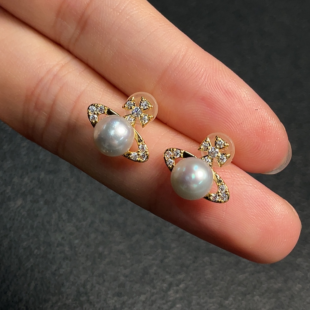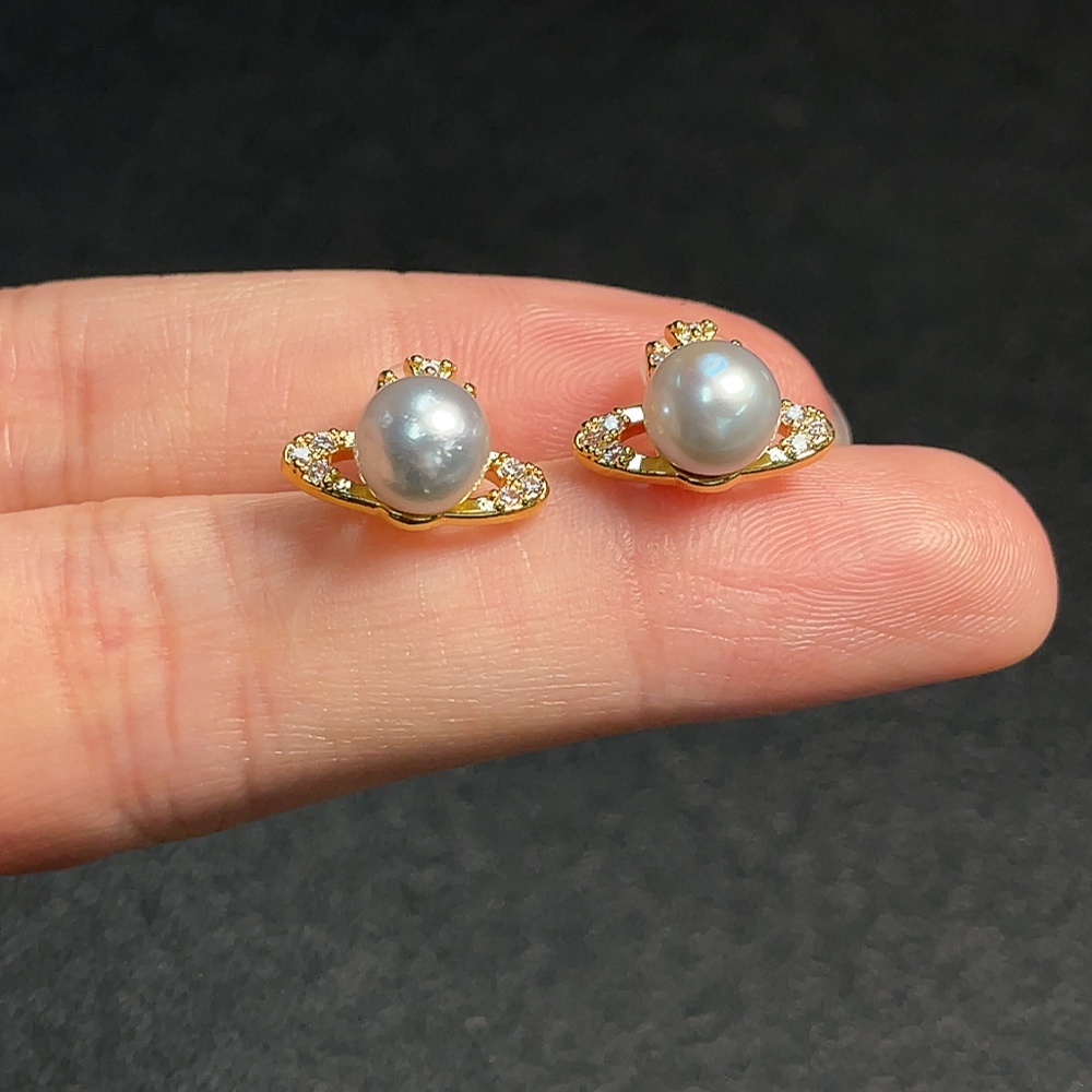 Seawater Pearl Earrings Non-Gold Color Origin Undetermined Total Weight Approx. 2.19g Size Around 6.5mm