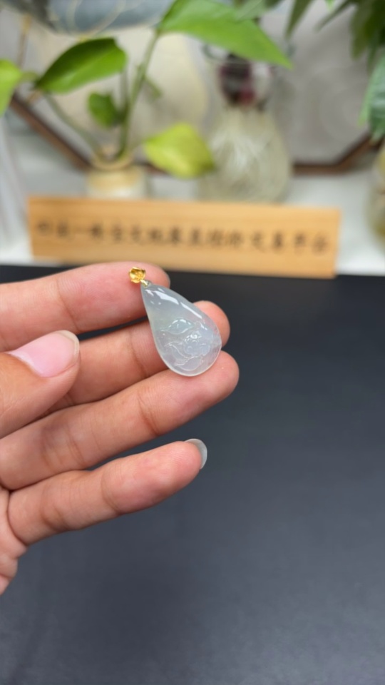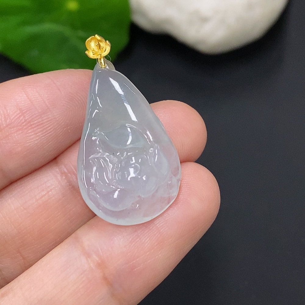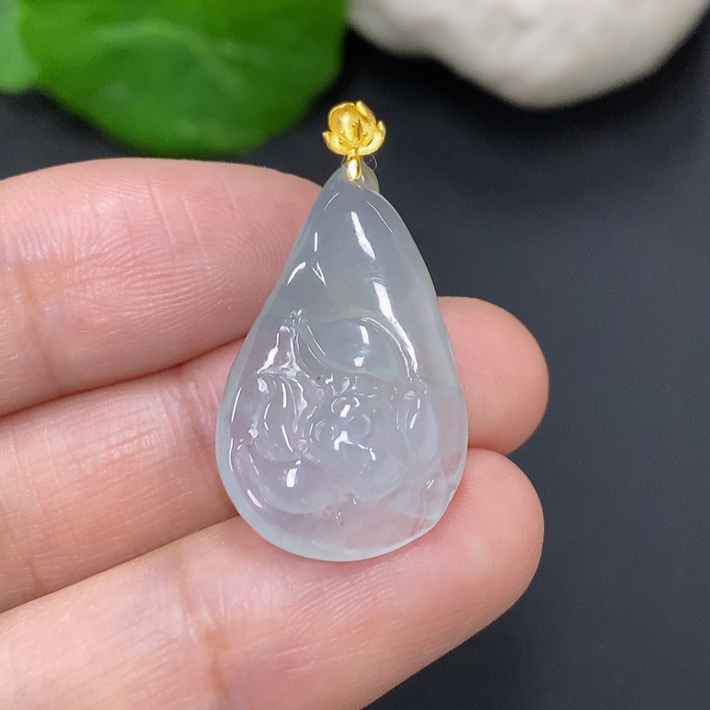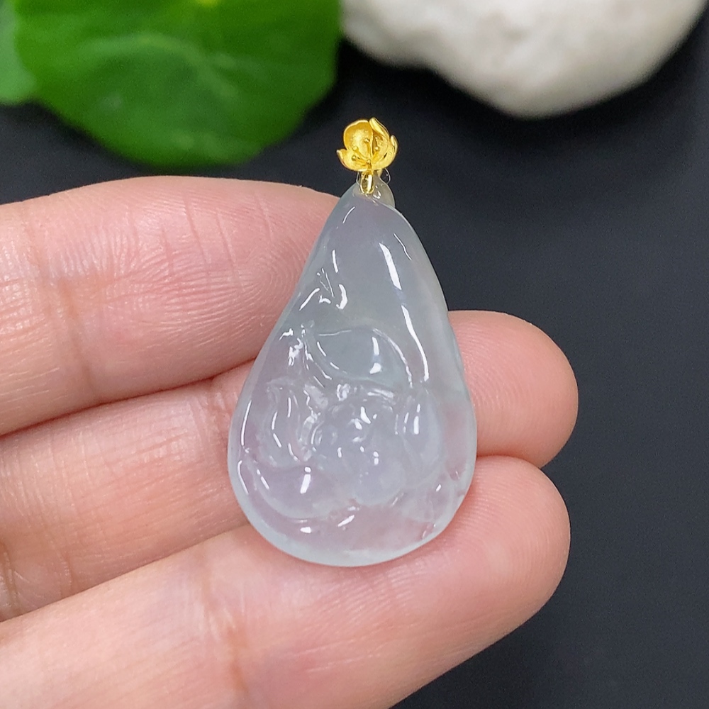 Jadeite Flower of Wealth and Honor Pendant with 18K Gold Clasp, Total Weight Approximately 4.4 Grams