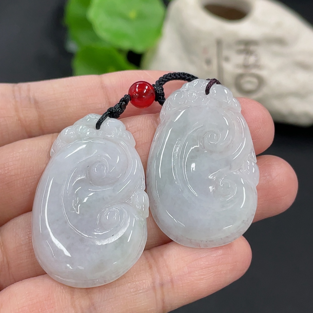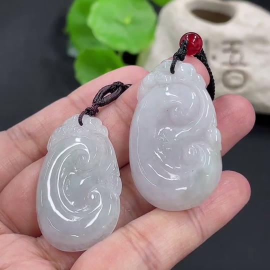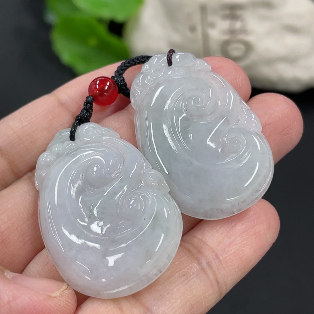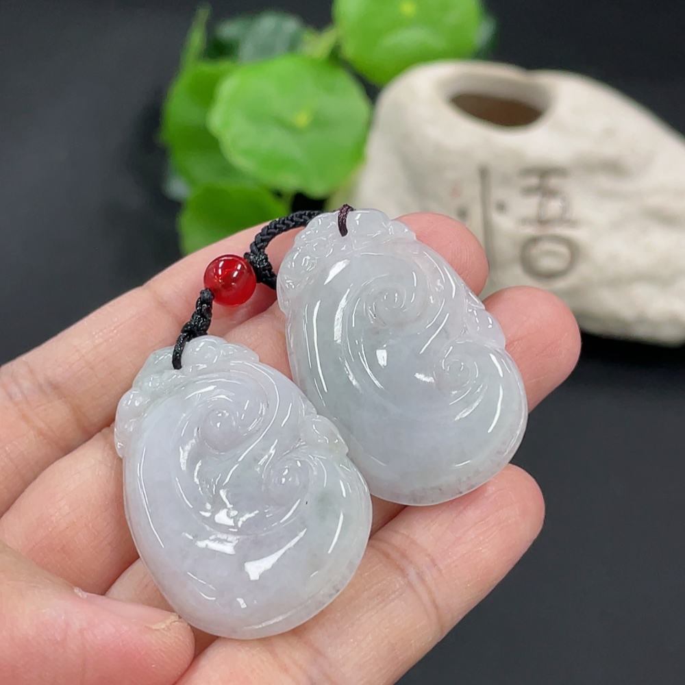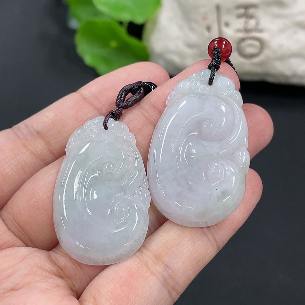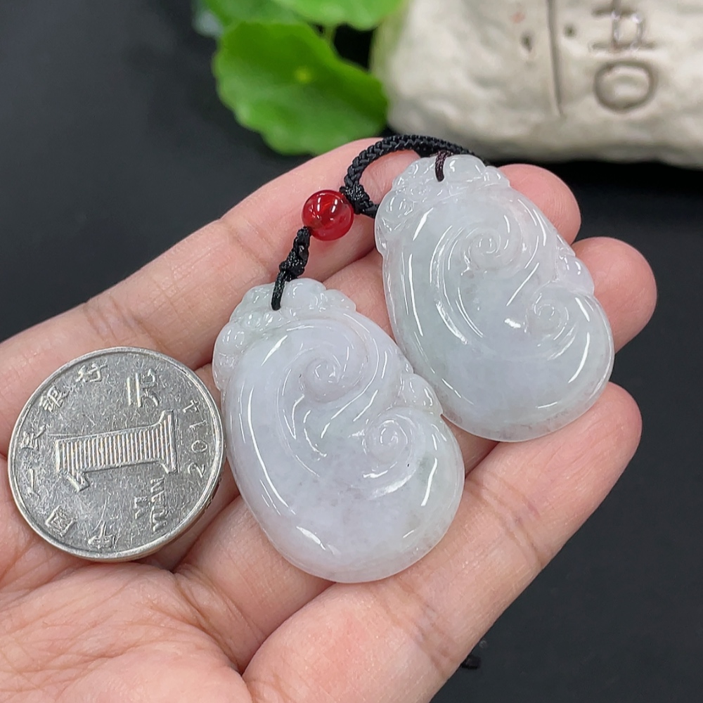 Jadeite Ruyi Pendant, total weight approx. 16.46g, with non-A grade accessory beads