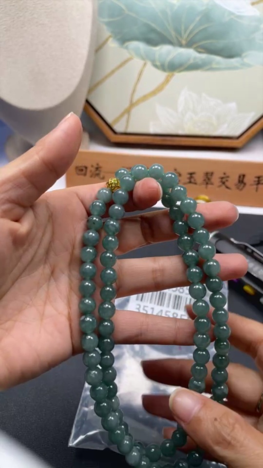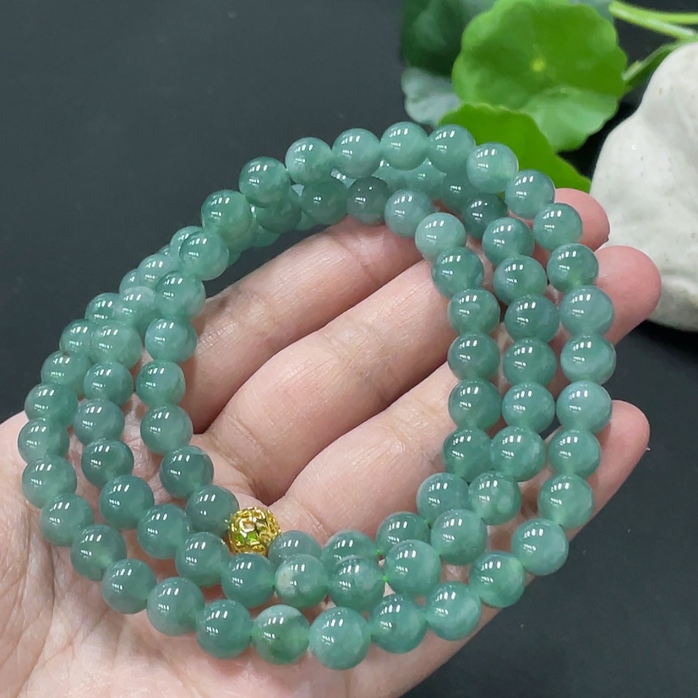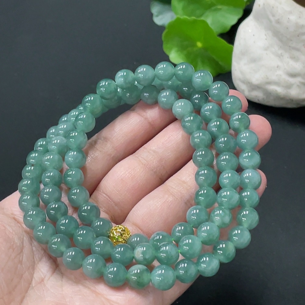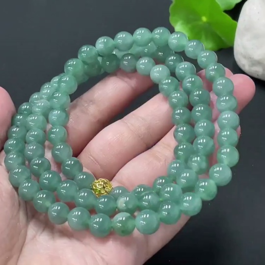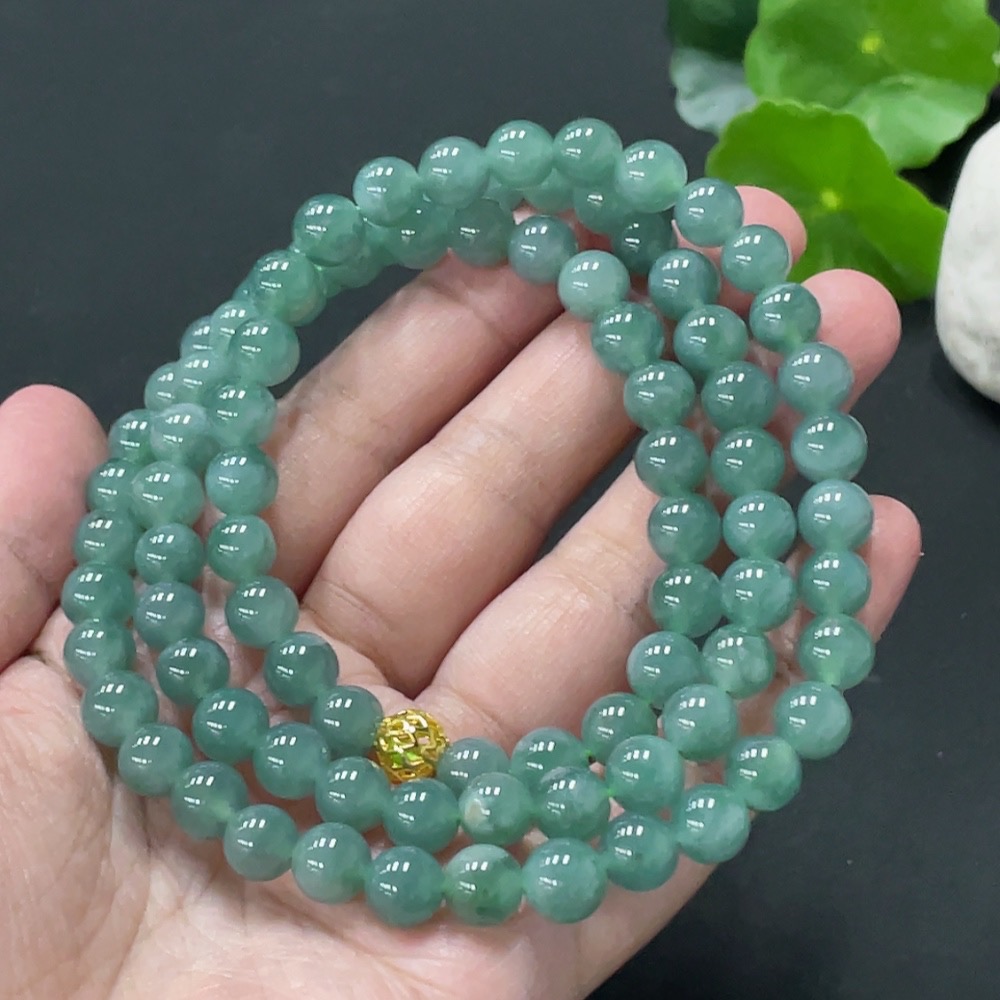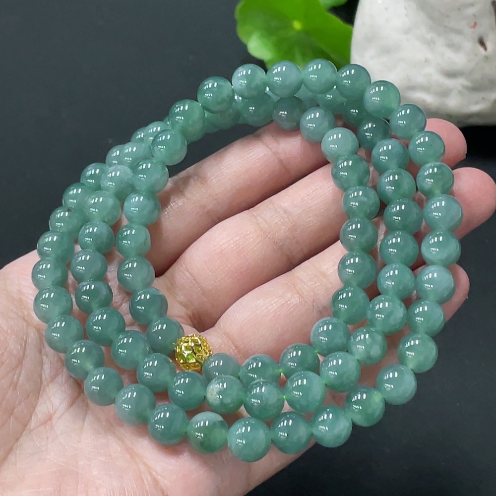Jadeite Bead Necklace Approx. 8mm Non-Gold Total Weight Approx. 71.35g
