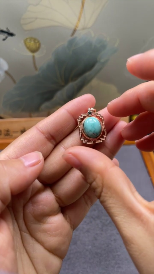 Turquoise pendant, color origin undetermined, contains other mineral components, non-metal, total weight approximately 3g