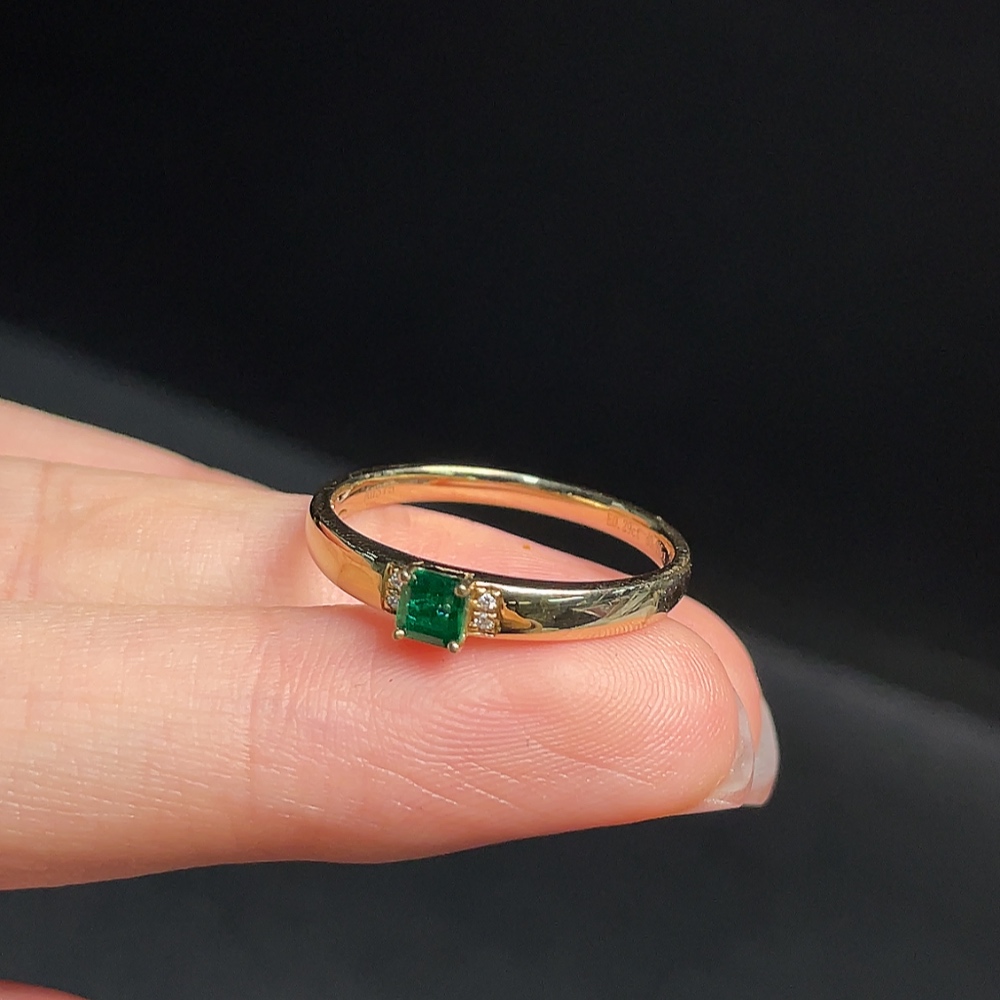 Emerald Ring Clarity Enhanced with Diamond Accents 37% Gold Total Weight Approx. 1.88g Size 19
