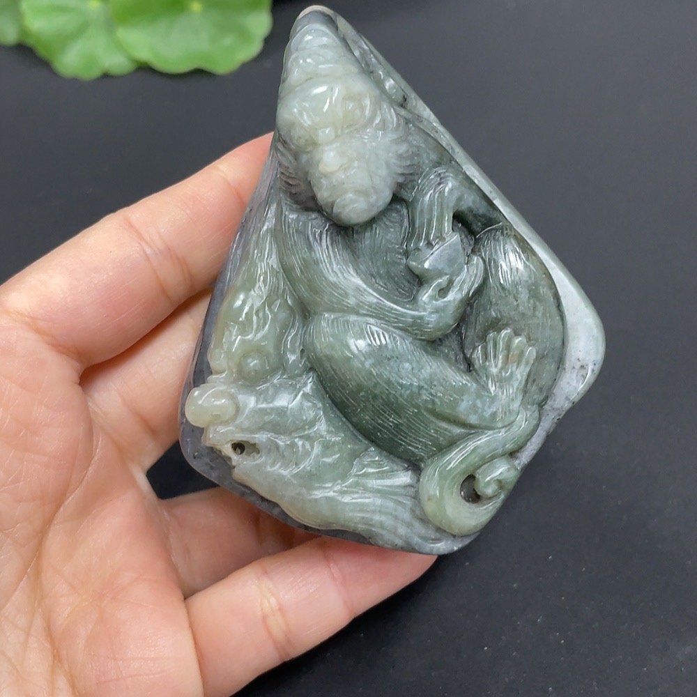 Hetian Jade Handheld Carving - Great Sage Equal of Heaven, Total Weight Approx. 188.6g