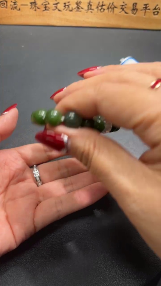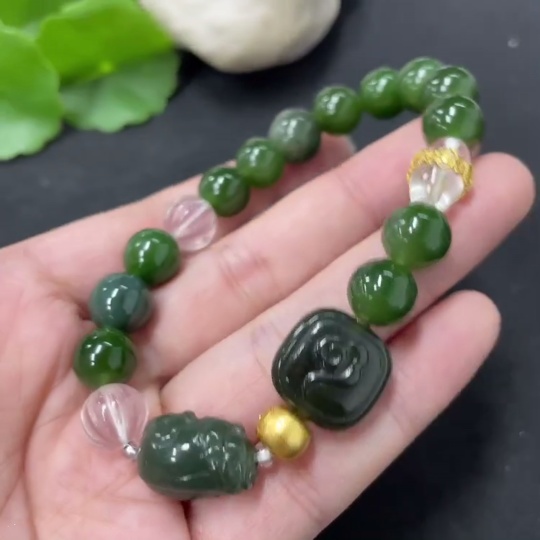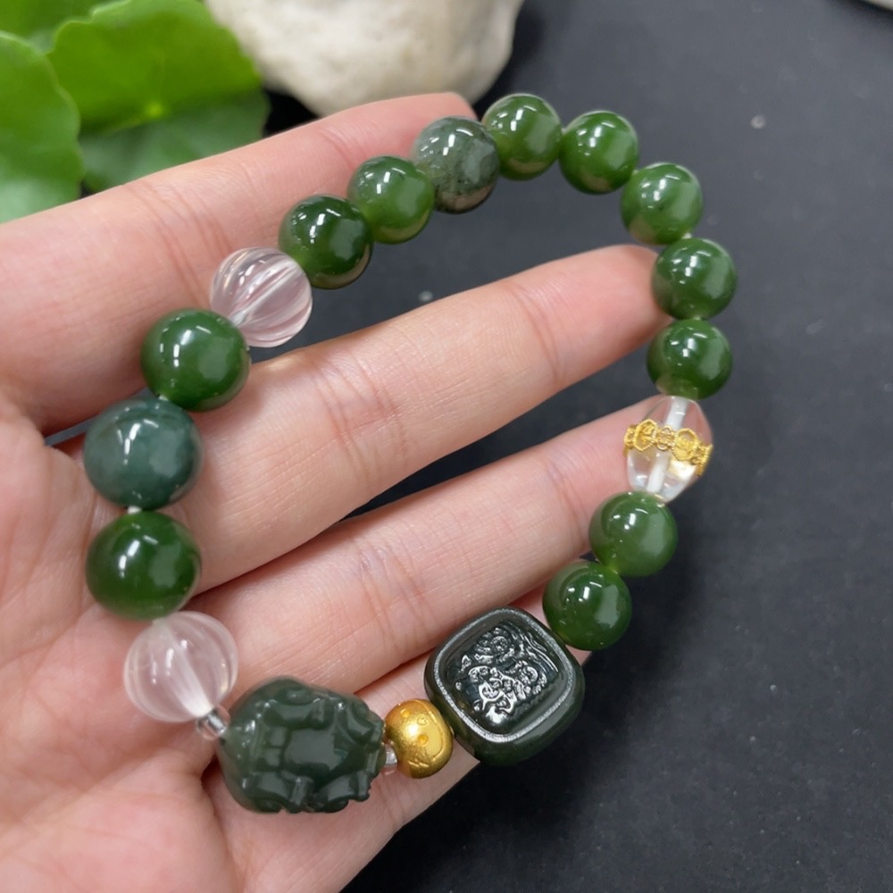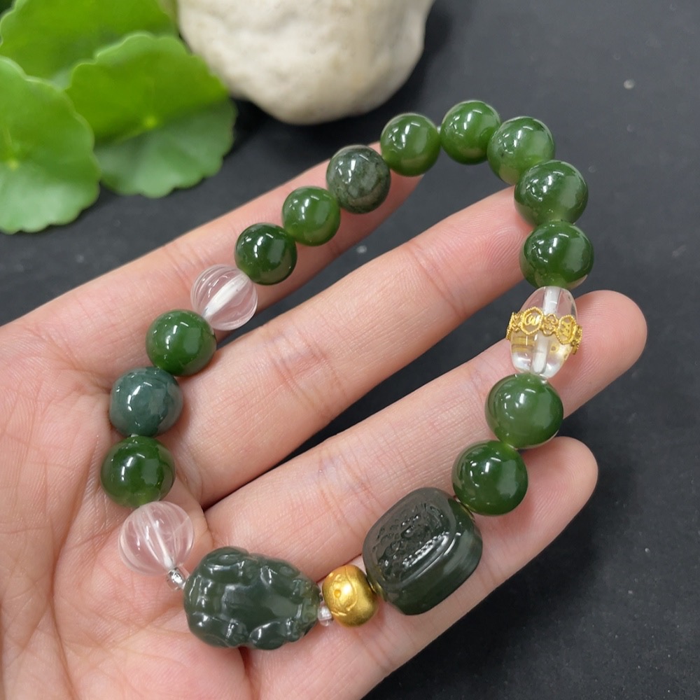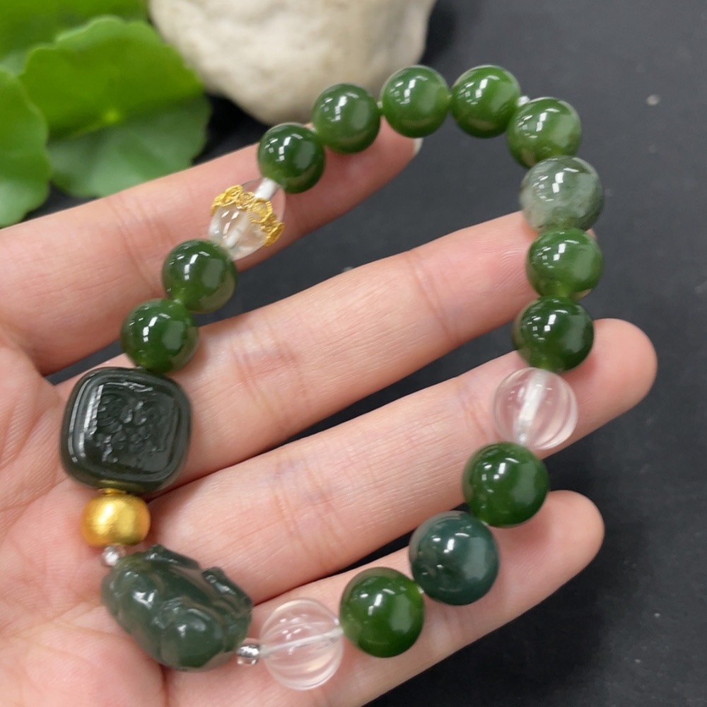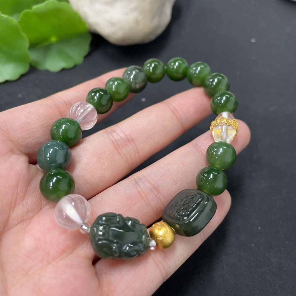 Hetian Jade Green Jade Bracelet, approx. 9.6mm, total weight approx. 31.2g, with non-Hetian Jade beads, non-gold