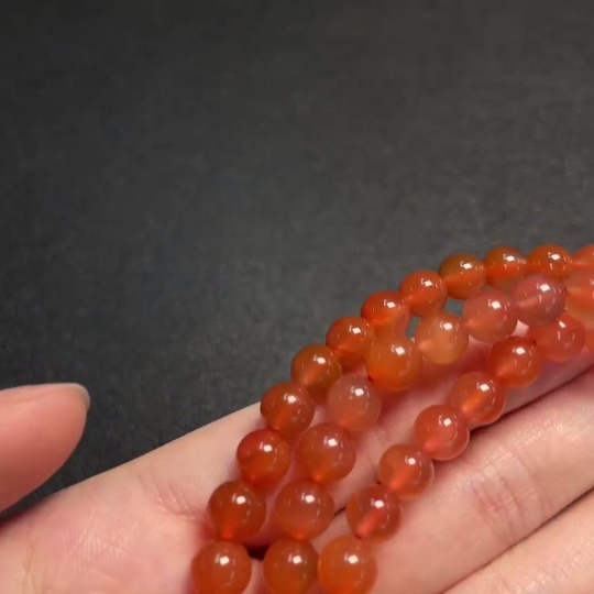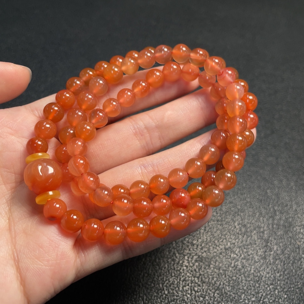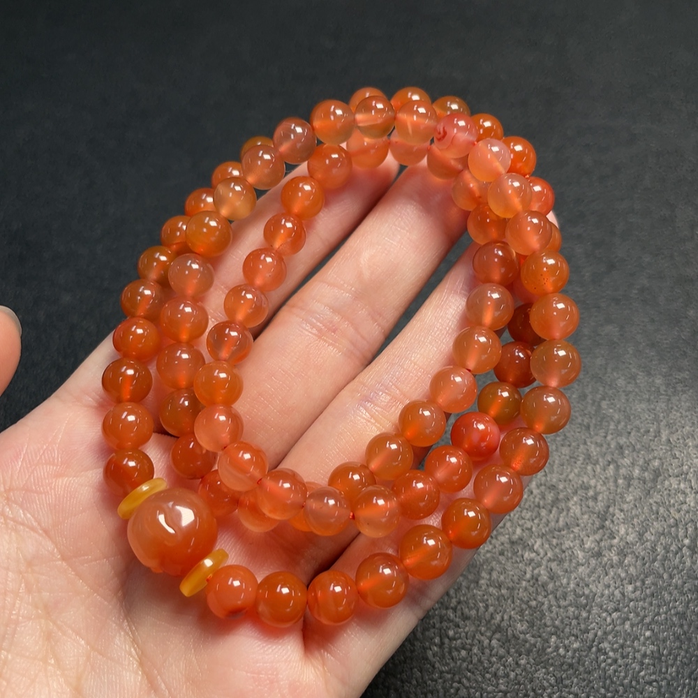 Red Agate Bead Necklace with Visible Organic Matter, Total Weight Approx. 41.05g, Bead Size 6.9-11.8mm, Paired with Amber