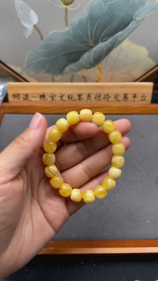 Amber and Beeswax Bracelet, Total Weight Approx. 10.08g, Size About 9.4mm