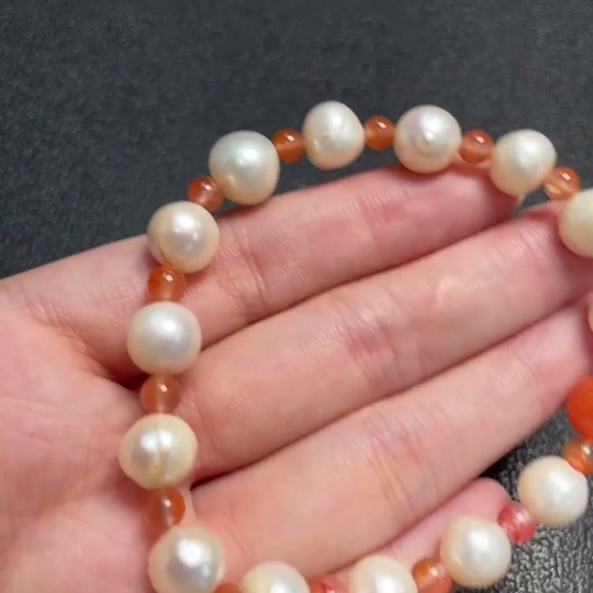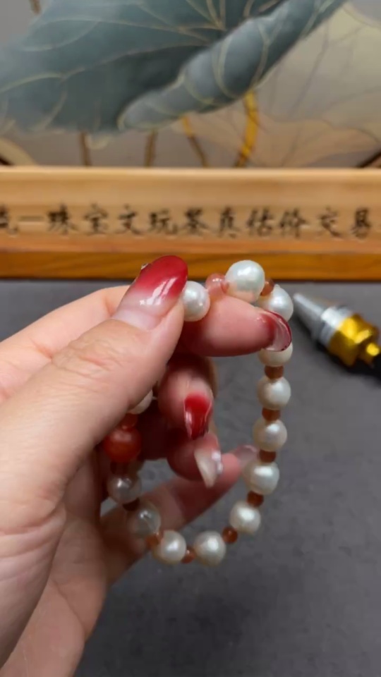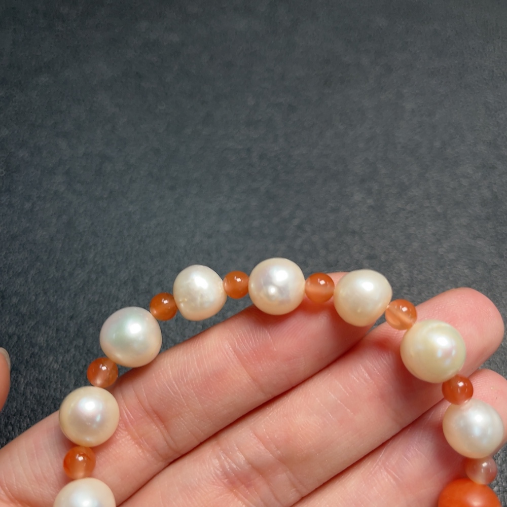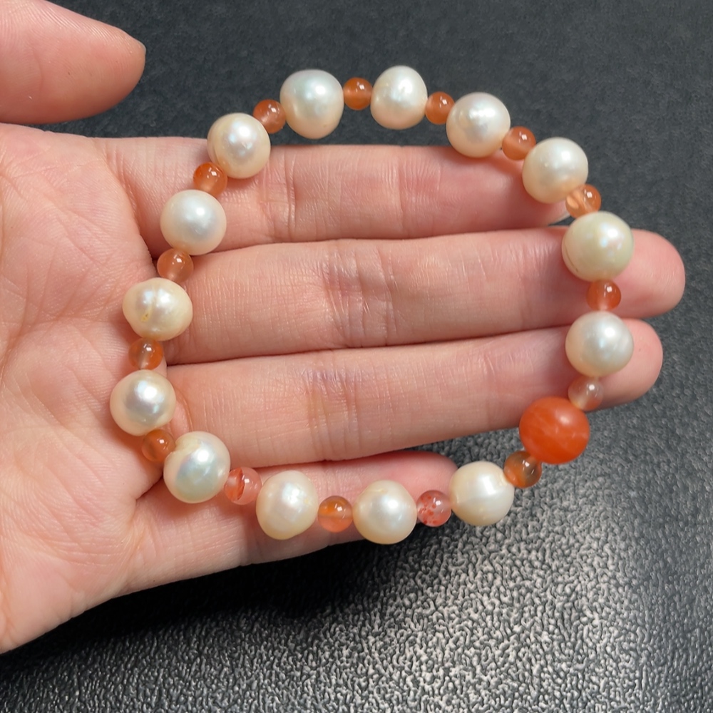 Pearl Bracelet with Southern Red Agate, Visible Organic Matter, Total Weight Approx. 16.59g, Size About 9mm