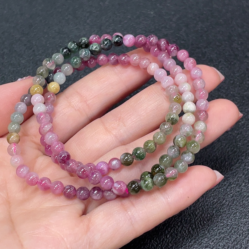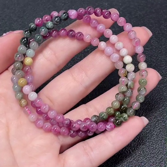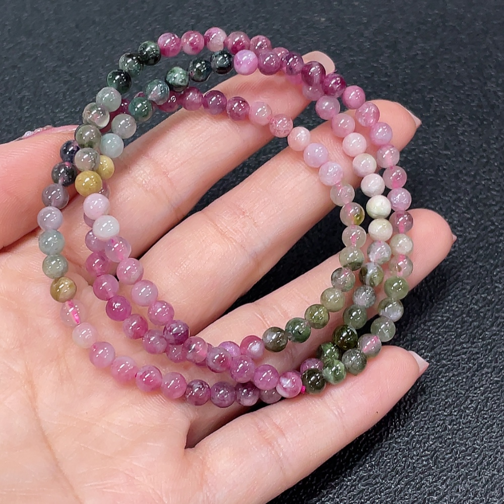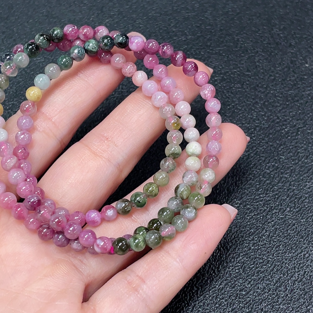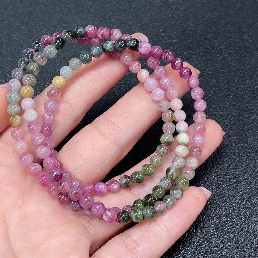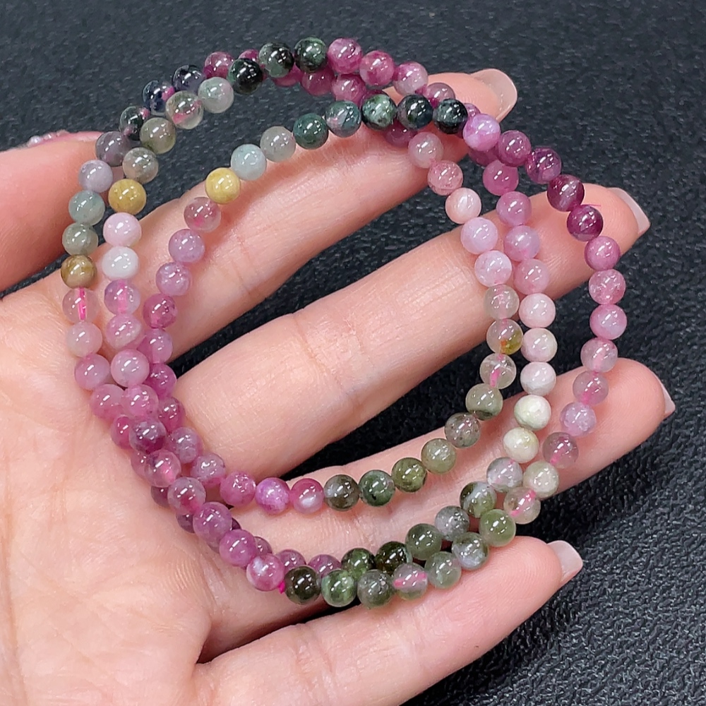 Tourmaline bead strand with other mineral components, visible organic matter, total weight approximately 16.91g, bead size about 4.4mm (mineral)