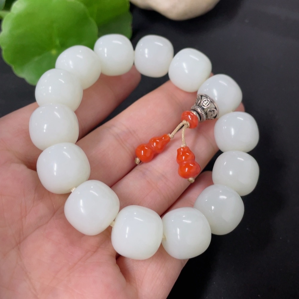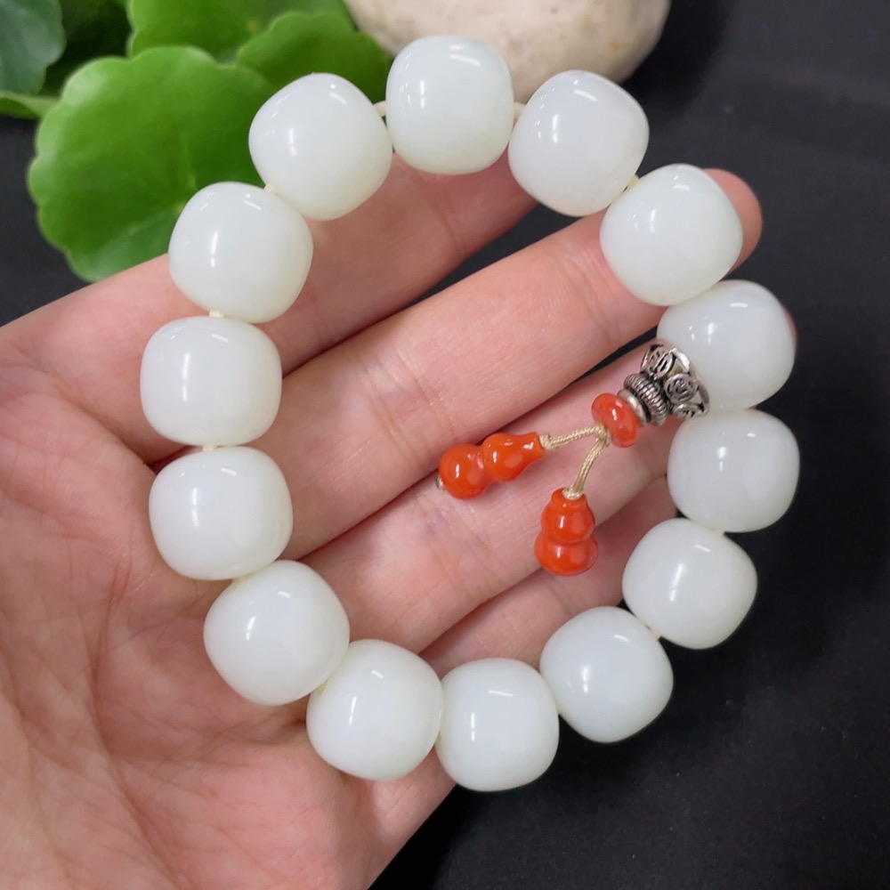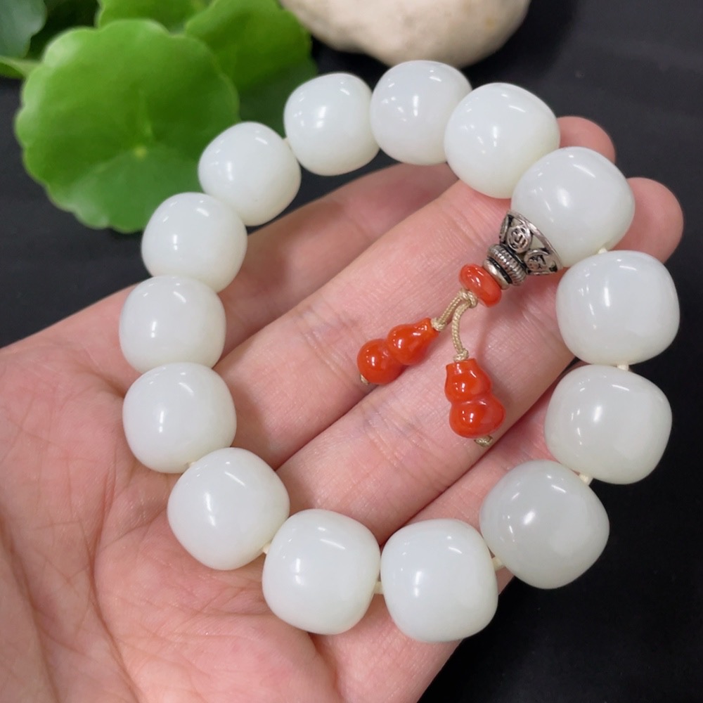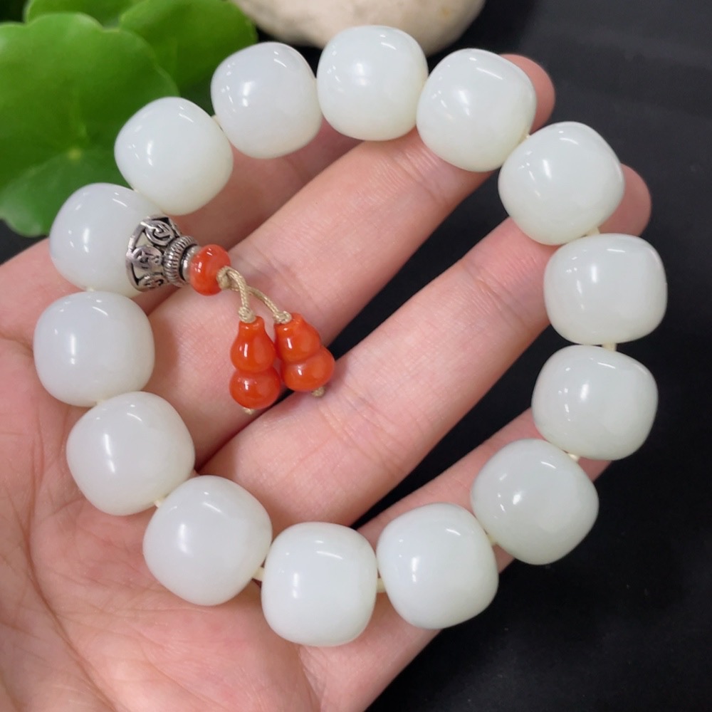 Hetian Jade Bracelet, approx. 13.6mm, total weight approx. 64.6g, beads not Hetian Jade